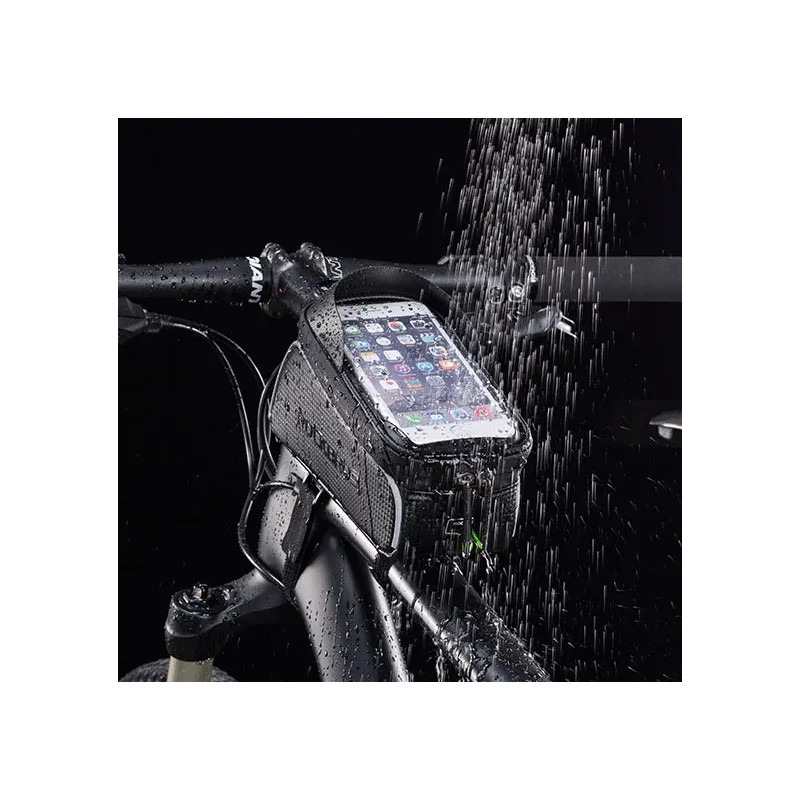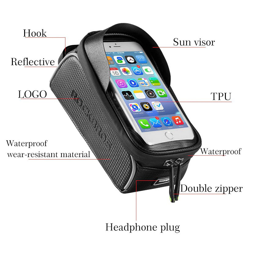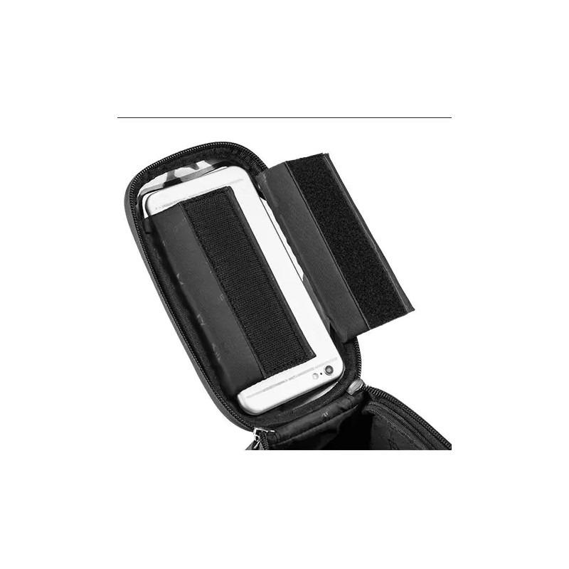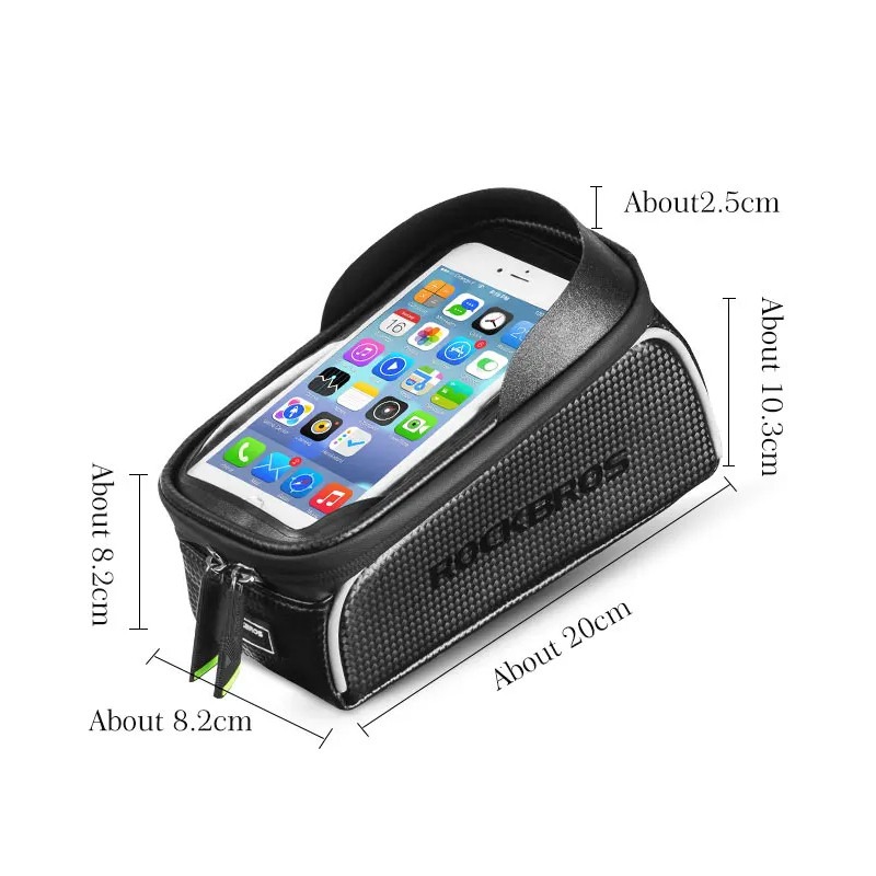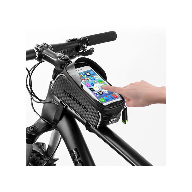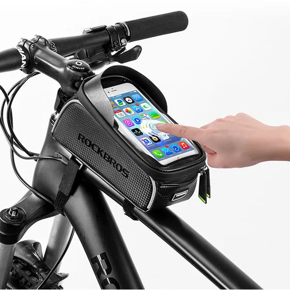 +48500464804Uchwyt na telefon i torba rowerowa Rockbros 017-3BK wraz z miejscem do przewożenia akcesoriów, dokumentów czy portfela.