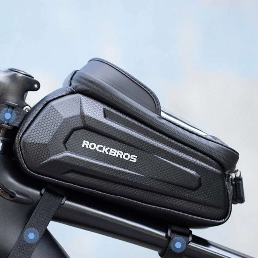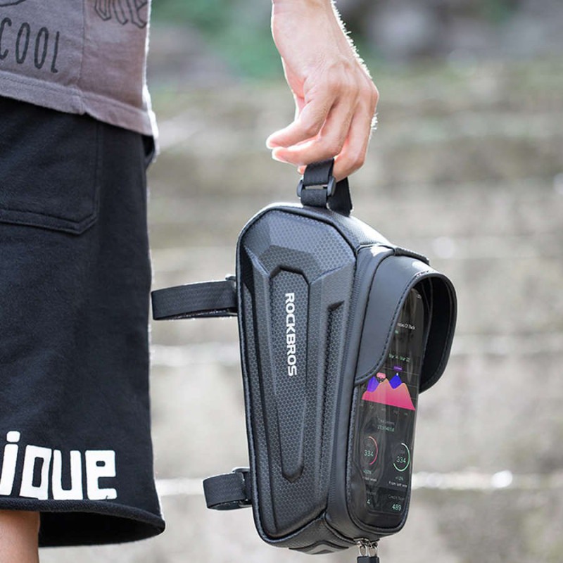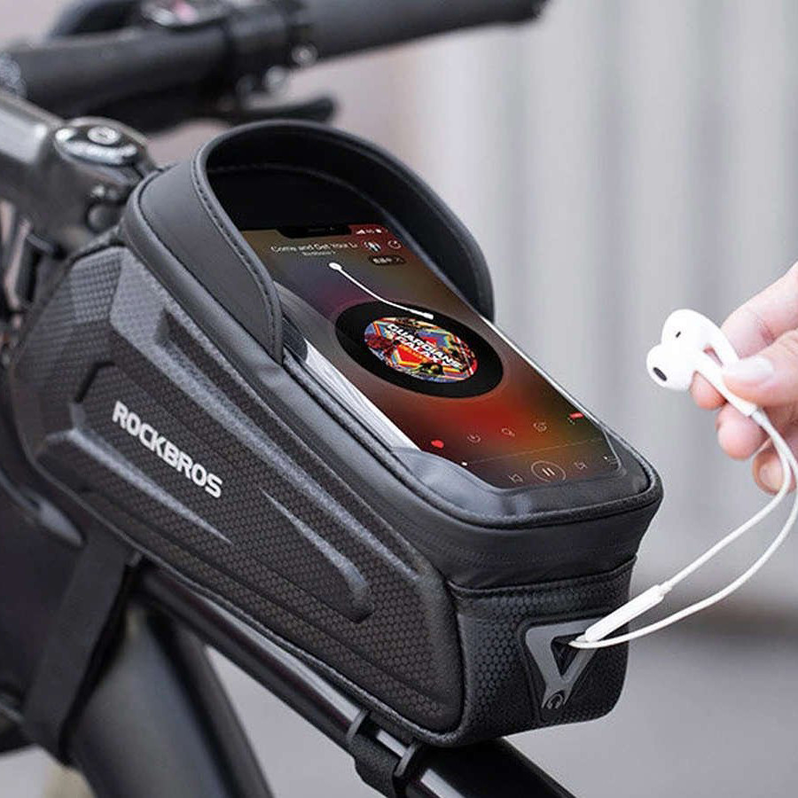 Uchwyt na telefon do roweru Rockbros B68 to uniwersalny i wygodny sposób na przechowywanie rzeczy osobistych i telefonu podczas jazdy rowerem.