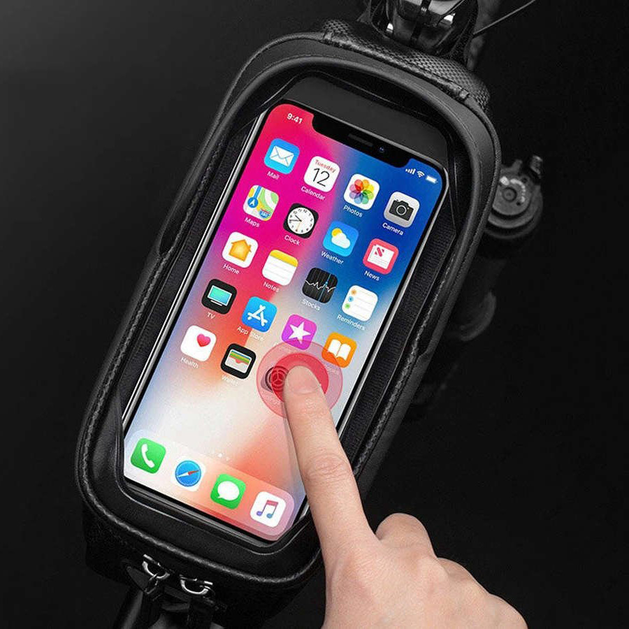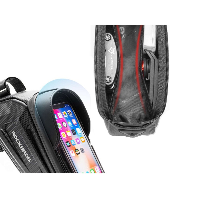 +48500464804Uchwyt na telefon i torba rowerowa Rockbros B68 wraz z miejscem do przewożenia akcesoriów, dokumentów czy portfela.