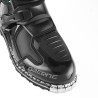 Doskonała przyczepność i kontrola: podeszwa o podwójnej mieszance gumy ze specjalistycznym bieżnikiem gwarantuje pewne oparcie na podnóżkach, nawet w błocie i deszczu. Od wewnętrznej strony buta umieszczono panele z zamszowej skóry, które pełnią funkcję osłony termicznej przed układem wydechowym i poprawiają chwyt motocykla.