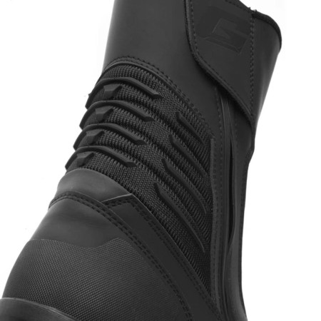 Ochrona i trwałość: bezpieczeństwo gwarantują wzmocnienia PU w okolicach piszczeli, kostek oraz pięty. Specjalna powłoka w obszarze zmiany biegów zwiększa odporność na zużycie i poprawia czucie motocykla.
