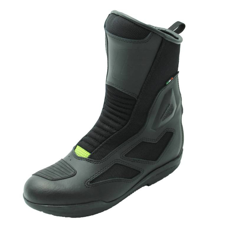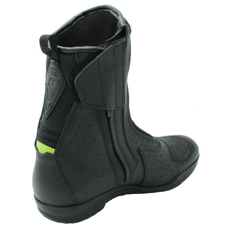 Bezpieczeństwo i stabilizacja: Model ten posiada strategiczne wzmocnienia w obrębie goleni oraz pięty, które mają za zadanie pochłaniać energię uderzenia oraz stabilizować nogę. Antypoślizgowa podeszwa o specjalnym profilu gwarantuje pewne podparcie na podnóżkach motocykla oraz bezpieczeństwo na mokrej nawierzchni.