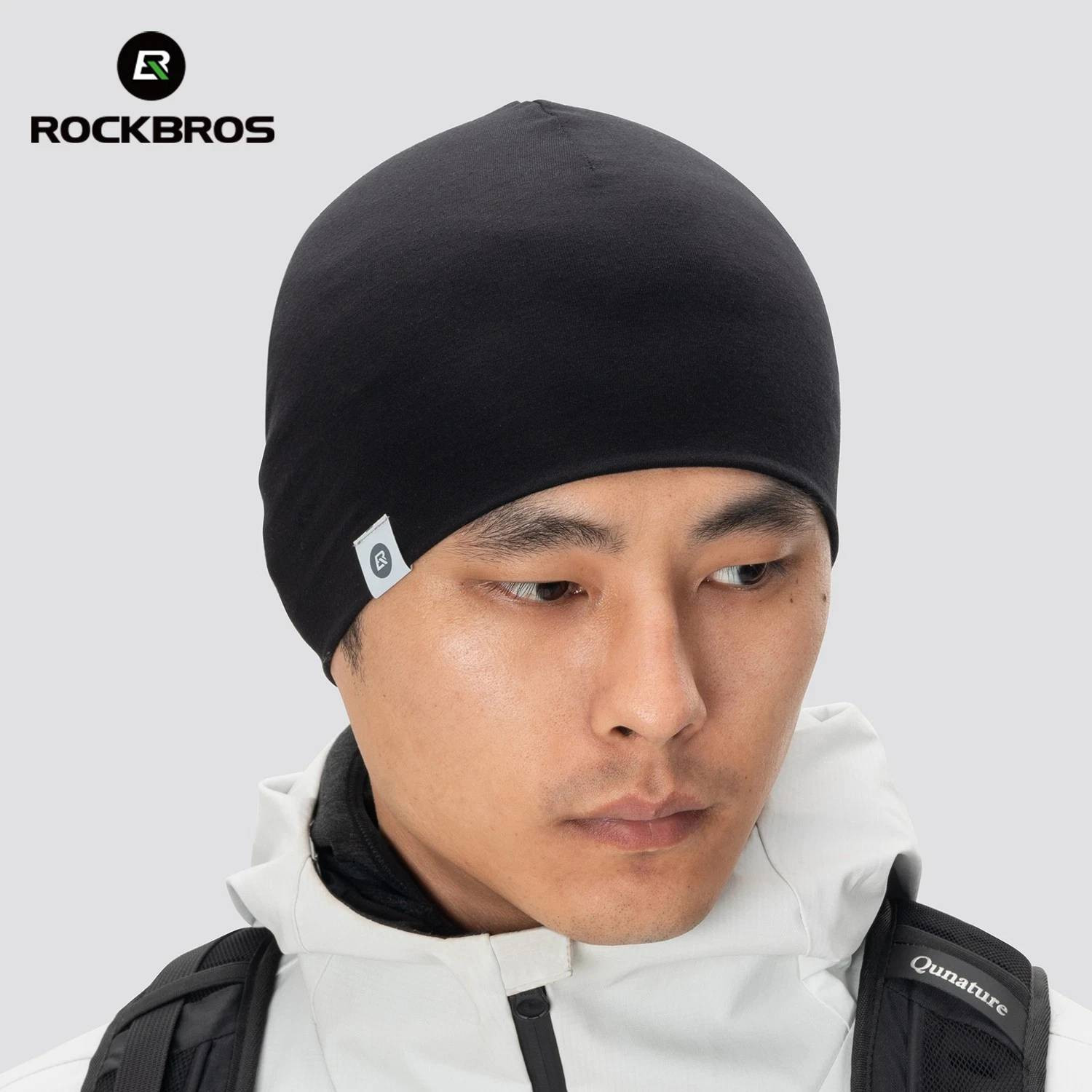 Czapka rowerowa, do biegania, sportowa, pod kask, elastyczna ROCKBROS wełna, Tencel, czarna 18250005