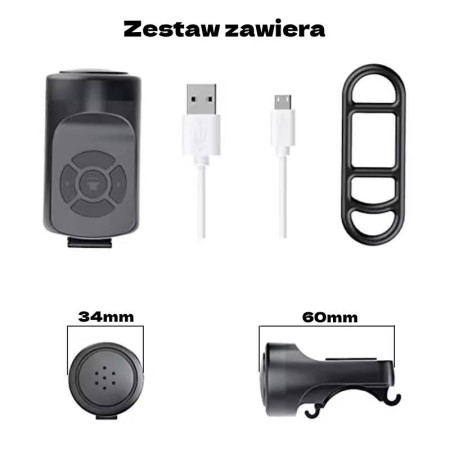 W zestawie: Dzwonek 2w1, kabel microUSB