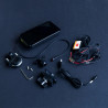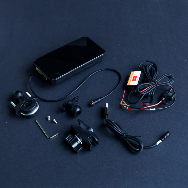 Montaż: Urządzenie należy zamontować na kierownicy lub wsporniku motocykla za pomocą dołączonego uchwytu. Przewody zasilające należy podłączyć do instalacji akumulatorowej 12V-24V.