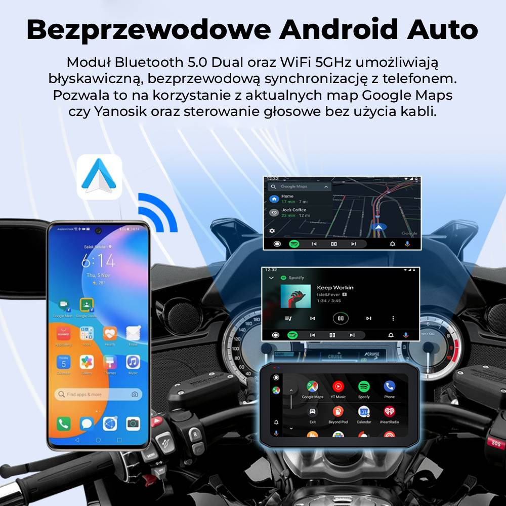 Bezprzewodowa łączność i integracja: Moduł Bluetooth 5.0 Dual oraz WiFi 5GHz umożliwiają błyskawiczną, bezprzewodową synchronizację z telefonem. Pozwala to na korzystanie z aktualnych map Google Maps czy Yanosik oraz sterowanie głosowe bez użycia kabli.