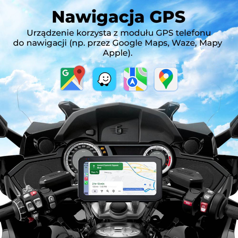 Motocyklowy system nawigacji Navtica Nomad to zaawansowane urządzenie wyposażone w 6,25-calowy ekran dotykowy HD, które przenosi funkcjonalność smartfona bezpośrednio na deskę rozdzielczą motocykla. Dzięki obsłudze bezprzewodowego CarPlay oraz Android Auto, rozwiązanie to pozwala na bezpieczne korzystanie z map, muzyki oraz komunikatów głosowych podczas jazdy. Urządzenie zostało zaprojektowane z myślą o pracy w ekstremalnych warunkach, co potwierdzają wysokie normy szczelności oraz wyjątkowa jasność wyświetlacza.