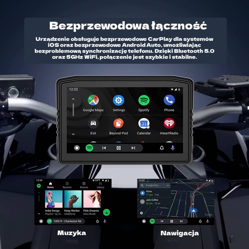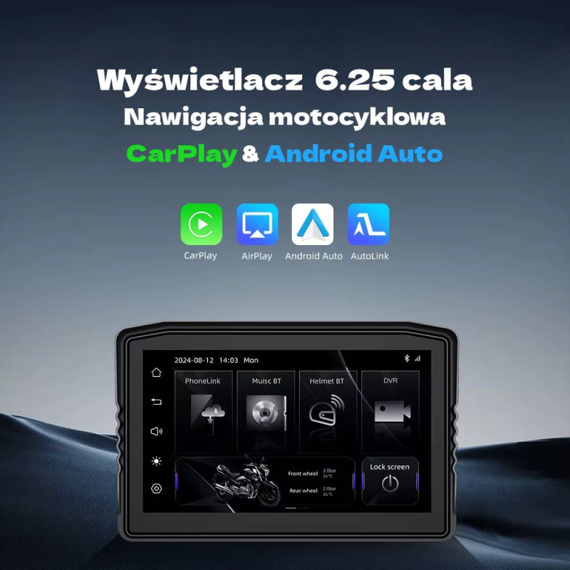 Motocyklowy wyświetlacz nawigacji 6.25" IPS z Wireless CarPlay i Android Auto