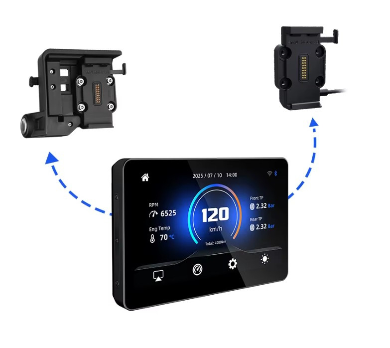 NAVTICA Polaris Edge – Inteligentny ekran motocyklowy z bezprzewodowym CarPlay i Android Auto z podwójnym systemem mocowania.