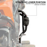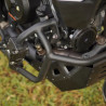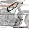 Zestaw ochronny silnika to zaawansowany system zabezpieczający kluczowe komponenty motocykla KTM 390 Adventure. Konstrukcja obejmuje zarówno osłonę zbiornika (Tank Guard), jak i osłonę silnika (Engine Guard), tworząc spójną i niezwykle wytrzymałą barierę ochronną. Wykończenie w kolorze Textured Matte Black zapewnia nie tylko estetyczny, surowy wygląd, ale również wysoką odporność na zarysowania i korozję.