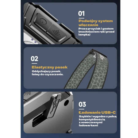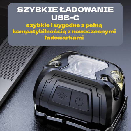 Latarka czołowa LED z czujnikiem ruchu i ładowaniem USB-C – lekka, wielofunkcyjna i wytrzymała