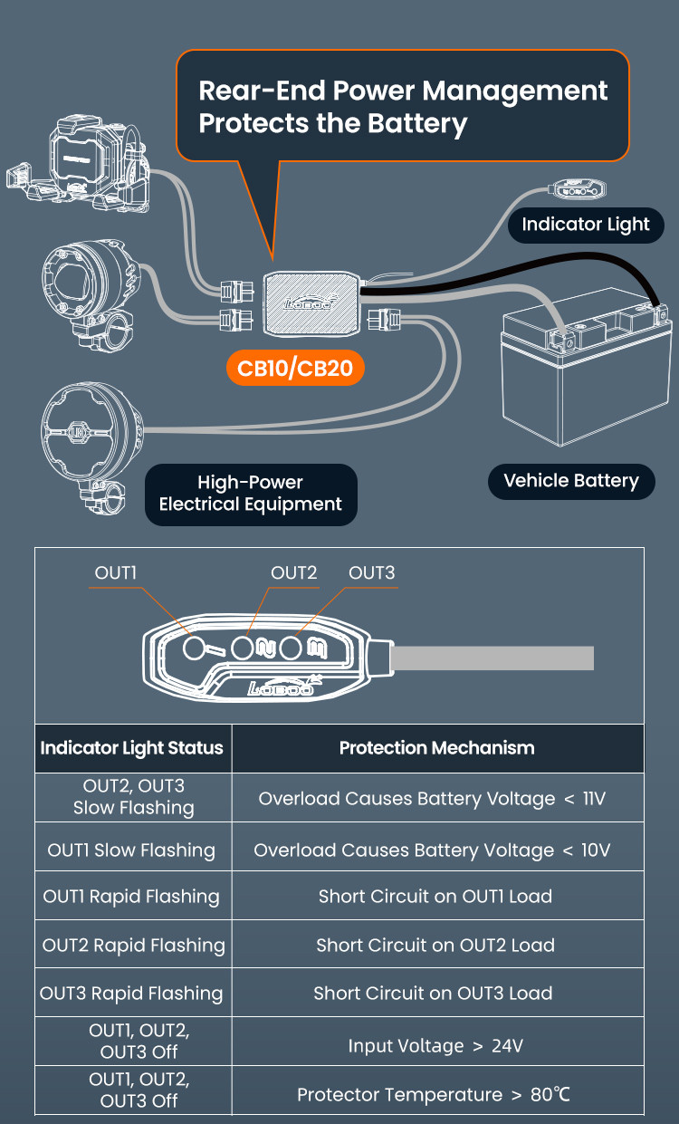 - Jakie konkretne problemy rozwiązuje inteligentne zabezpieczenie baterii? Zapobiega zbyt dużemu zużyciu energii przez dodatkowe urządzenia, co prowadzi do niedoładowania lub uszkodzenia baterii. Dodaje wiele zabezpieczeń, aby zapobiec zwarciom w dodatkowym sprzęcie, które mogłyby uszkodzić akumulator lub pojazd. Dodane okablowanie jest bardziej uporządkowane, co zmniejsza zagrożenie bezpieczeństwa spowodowane przez niechlujne okablowanie akumulatora.