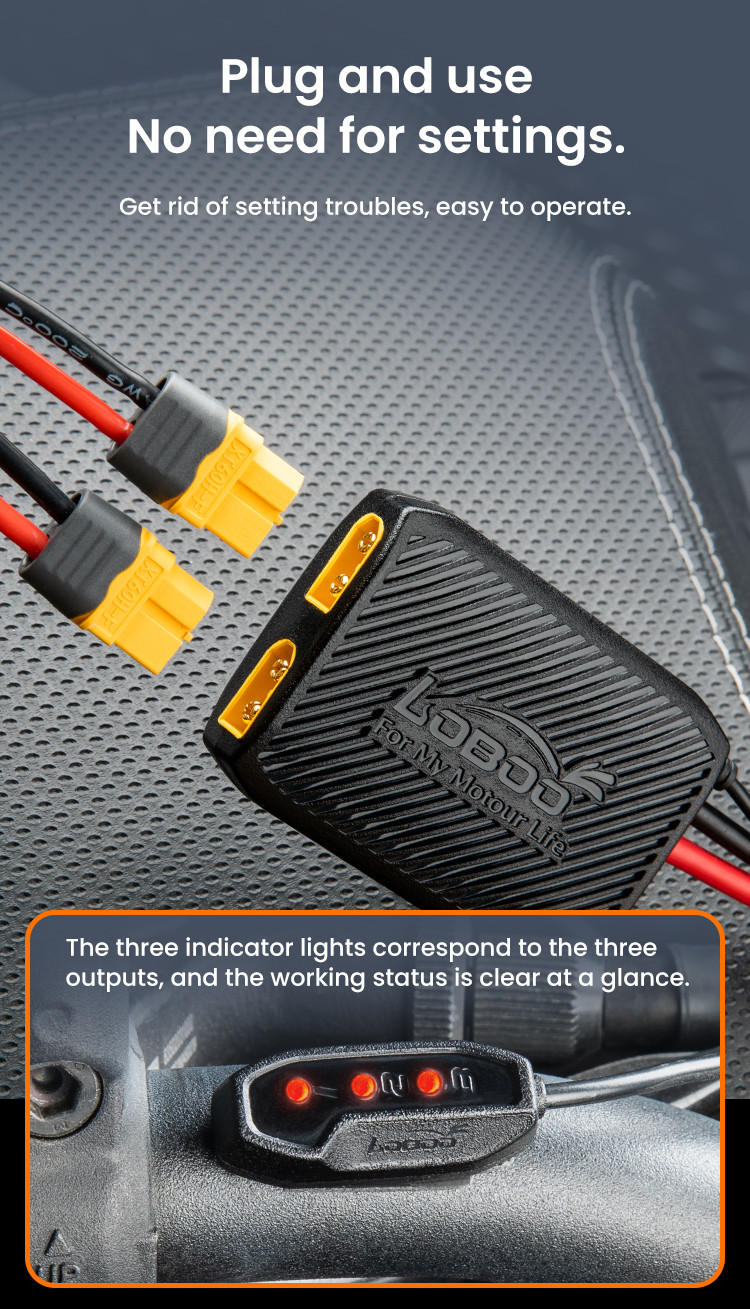 - Podłącz i używaj Nie wymaga ustawień, jest łatwy w obsłudze. Trzy lampki kontrolne odpowiadają trzem wyjściom, a stan pracy jest widoczny na pierwszy rzut oka.