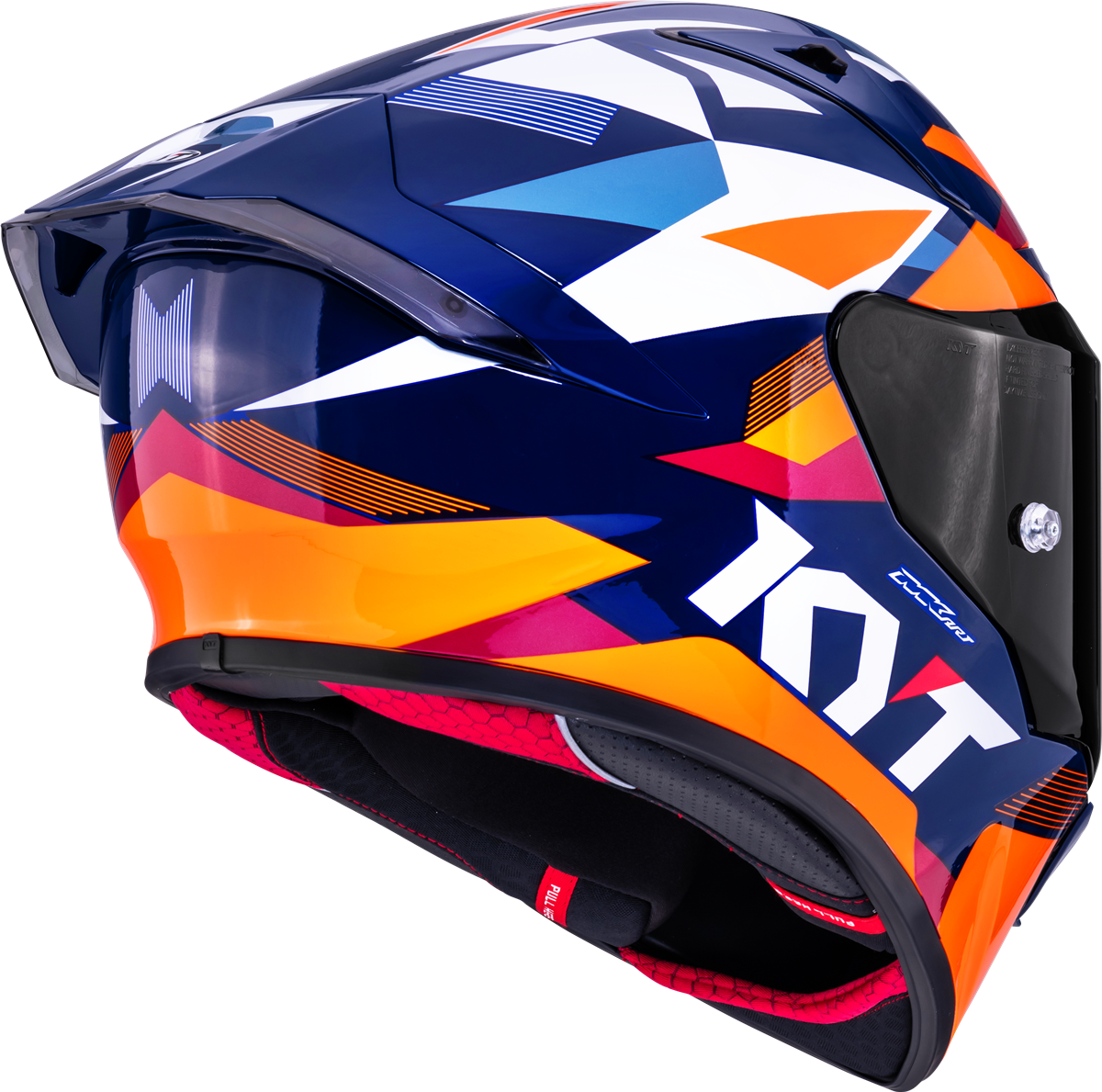 Przygotuj się na jazdę inspirowaną MotoGP! Ten dynamiczny design, zaprojektowany i rozwijany we Włoszech z wykorzystaniem najbardziej zaawansowanych narzędzi cyfrowych, przeszedł rygorystyczne testy z udziałem kierowców teamowych KYT, aby zapewnić topową wydajność. Kask może pochwalić się ulepszoną aerodynamiką, dzięki ponad trzem latom testów w tunelu aerodynamicznym oraz intensywnym testom na drodze i torze. Wszystko po to, by zoptymalizować aerodynamikę w różnych pozycjach jazdy – na prostej, podczas hamowania i w zakrętach – dla maksymalnego komfortu kierowcy.