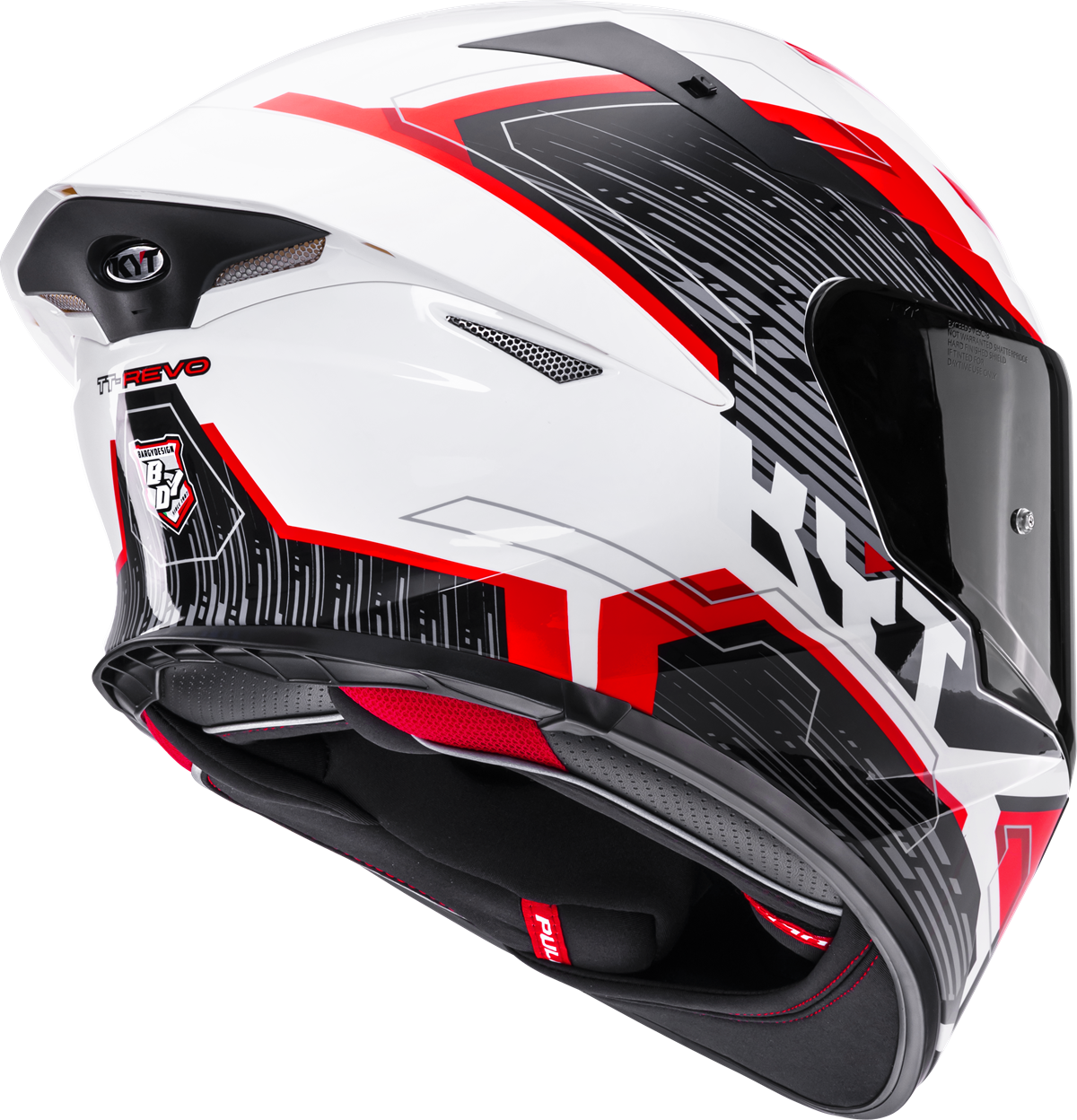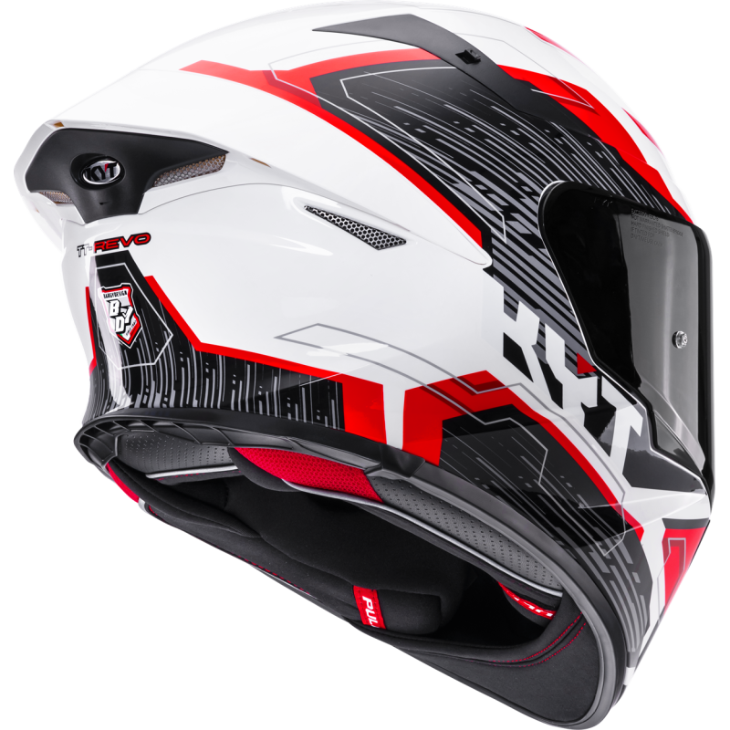 TT-REVO to integralny kask wyścigowy od KYT, wykonany z termoplastiku w technologii ADT-Advanced. Jego agresywne i ekscytujące kształty zostały dokładnie przebadane w tunelu aerodynamicznym, aby osiągnąć najlepsze osiągi aerodynamiczne, nie zapominając o stylu i ergonomii.