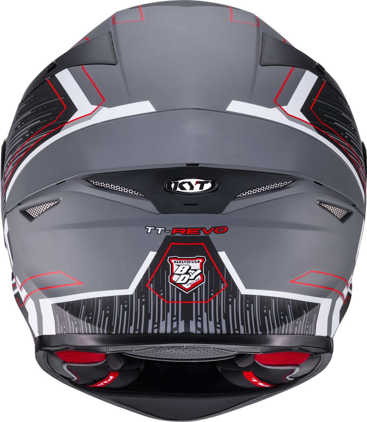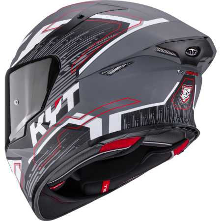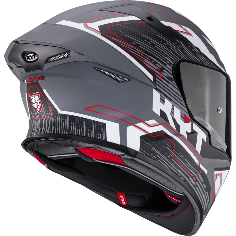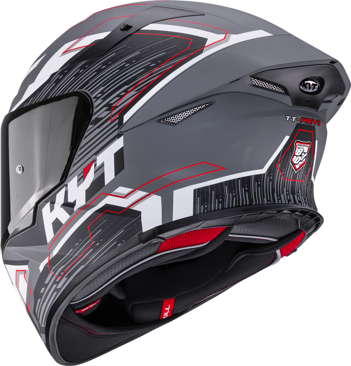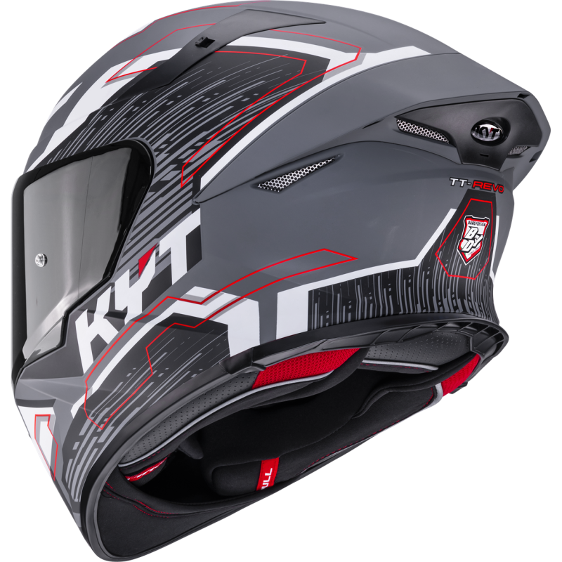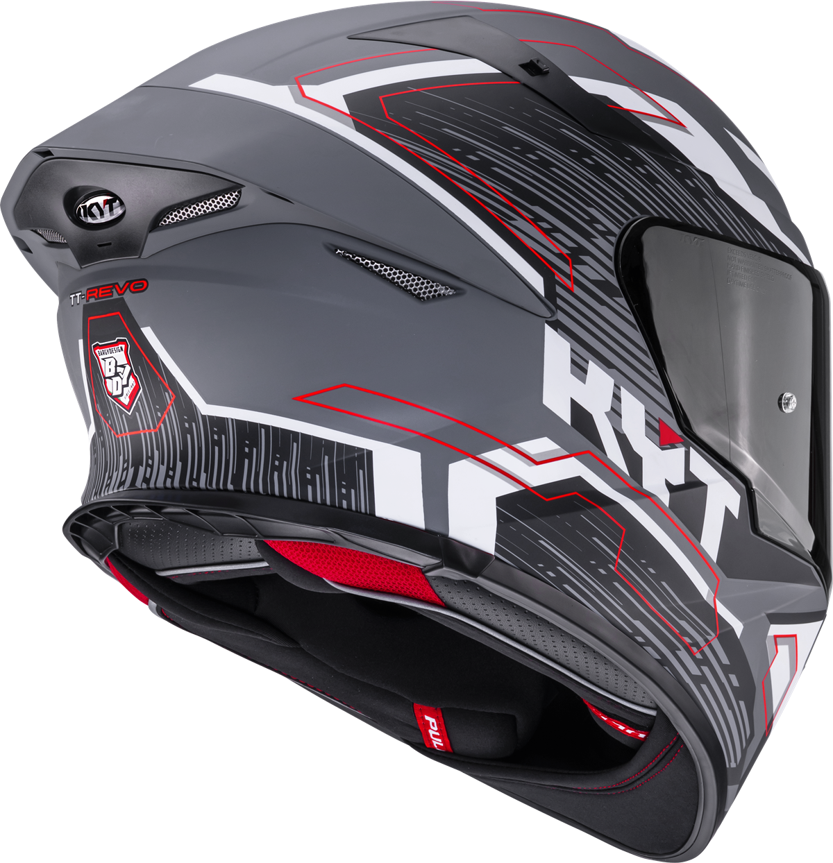 TT-REVO to integralny kask wyścigowy od KYT, wykonany z termoplastiku w technologii ADT-Advanced. Jego agresywne i ekscytujące kształty zostały dokładnie przebadane w tunelu aerodynamicznym, aby osiągnąć najlepsze osiągi aerodynamiczne, nie zapominając o stylu i ergonomii.