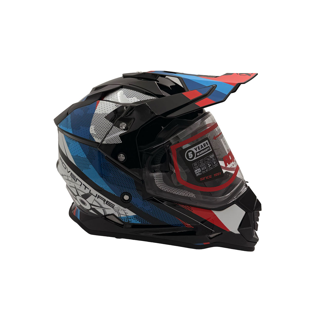 Funkcjonalny daszek Adventure: charakterystyczny, zintegrowany daszek pełni podwójną funkcję: chroni przed oślepiającym słońcem oraz stanowi barierę dla błota i deszczu. Jest to element nie tylko podnoszący walory użytkowe, ale także podkreślający agresywny, wyprawowy styl kasku.