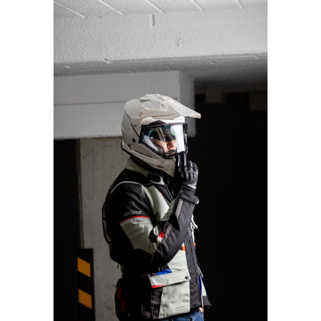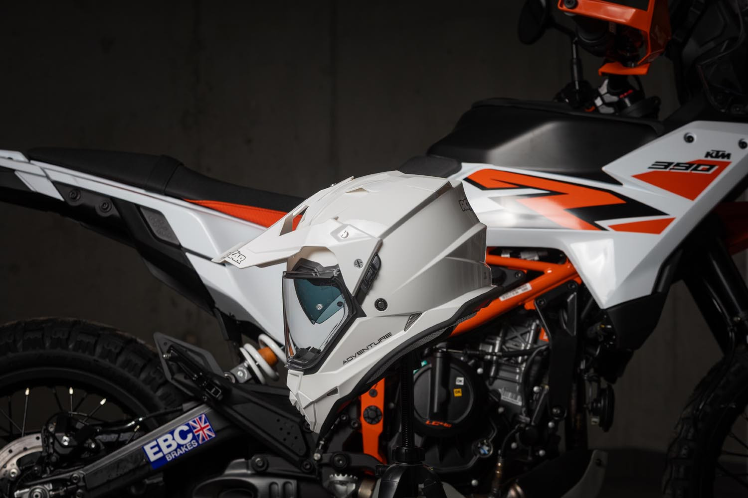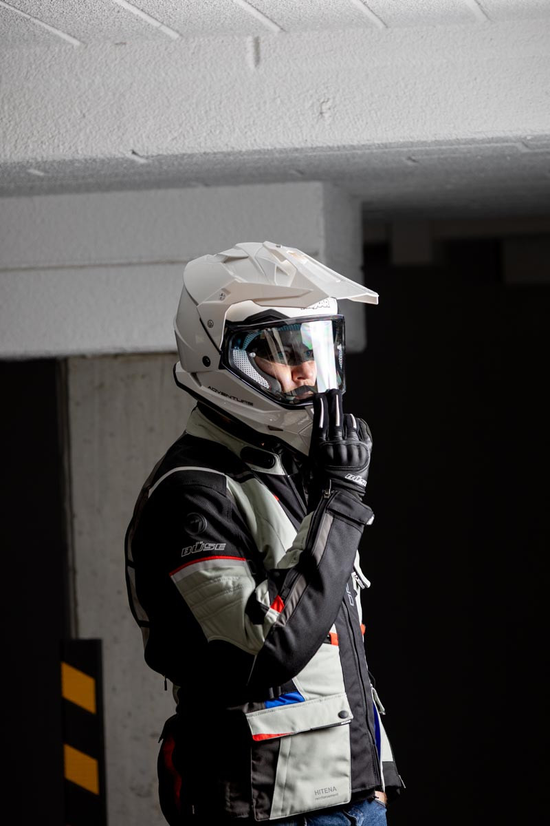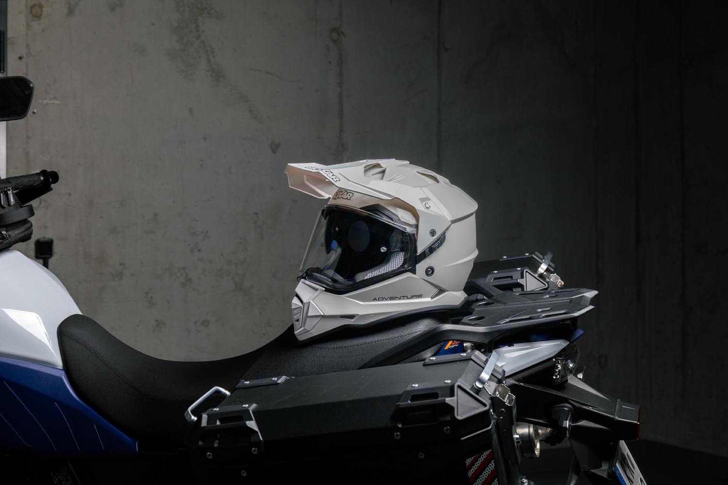 Funkcjonalny daszek Adventure: charakterystyczny, zintegrowany daszek pełni podwójną funkcję: chroni przed oślepiającym słońcem oraz stanowi barierę dla błota i deszczu. Jest to element nie tylko podnoszący walory użytkowe, ale także podkreślający agresywny, wyprawowy styl kasku.
