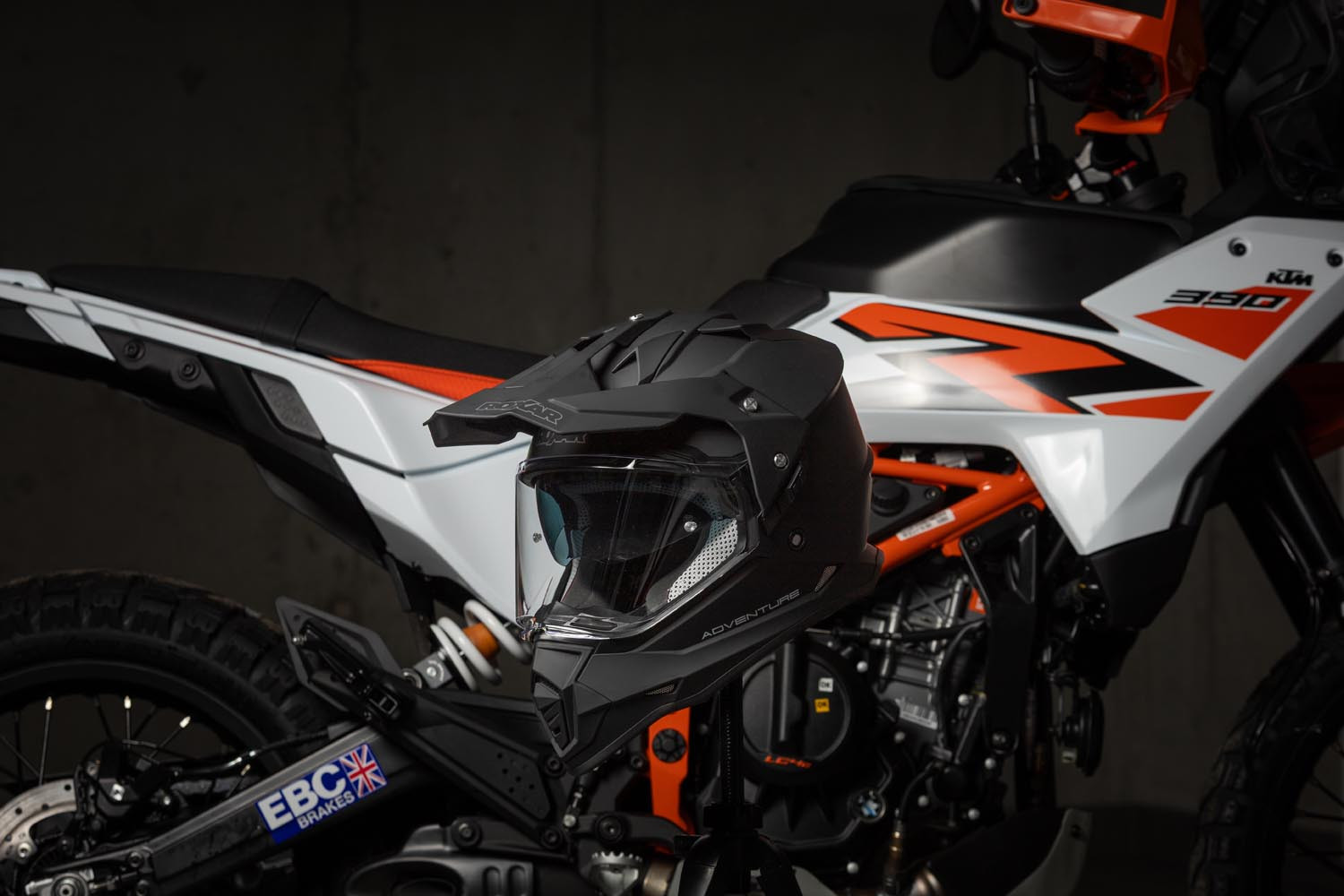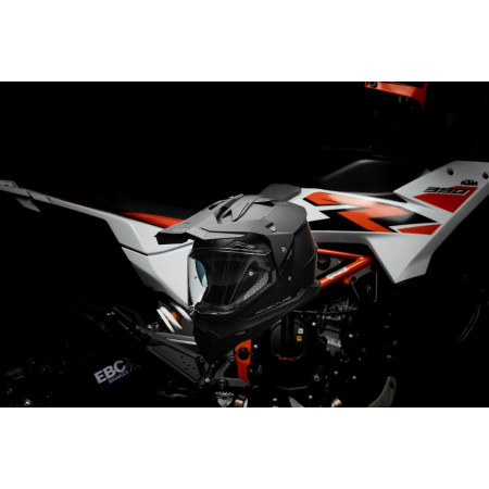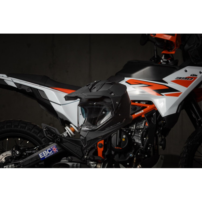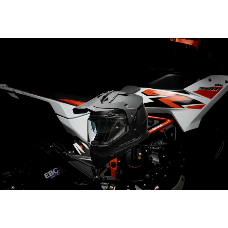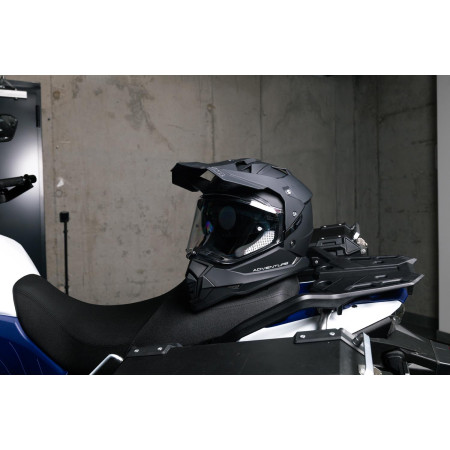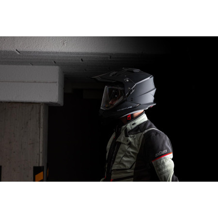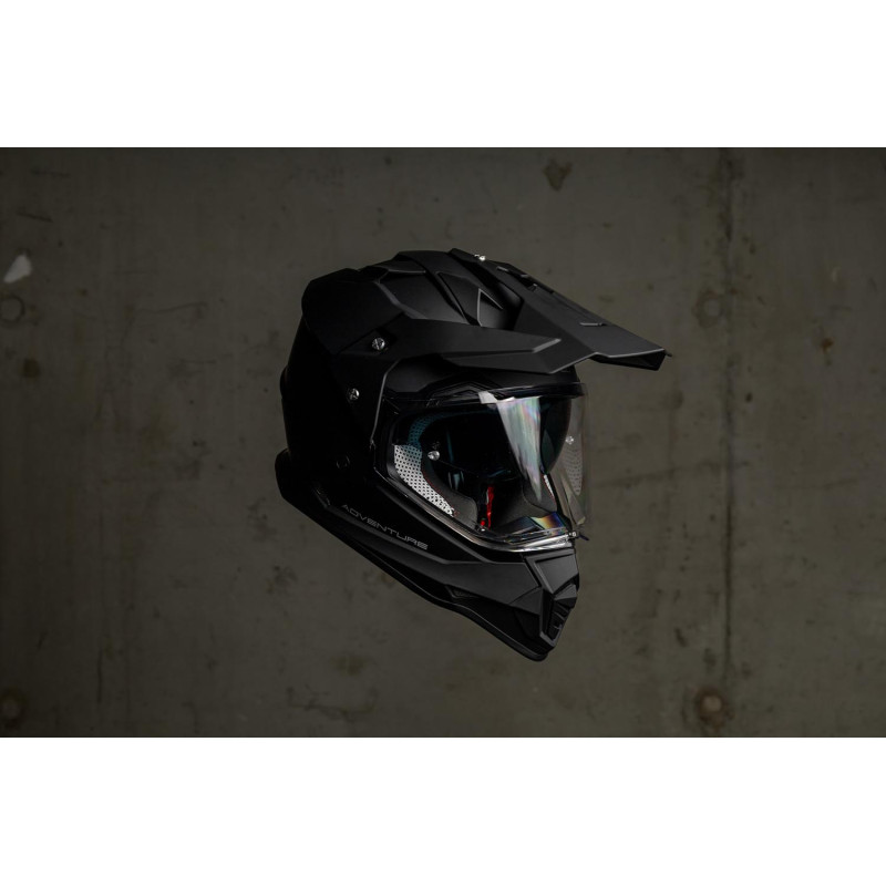 Funkcjonalny daszek Adventure: charakterystyczny, zintegrowany daszek pełni podwójną funkcję: chroni przed oślepiającym słońcem oraz stanowi barierę dla błota i deszczu. Jest to element nie tylko podnoszący walory użytkowe, ale także podkreślający agresywny, wyprawowy styl kasku.
