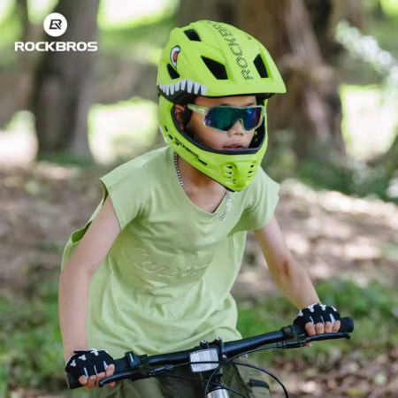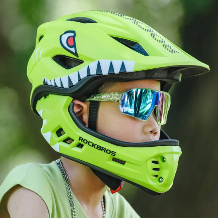 Kask dziecięcy z odpinana szczęką 2w1 ROCKBROS TT-32003 Green Shark zielony