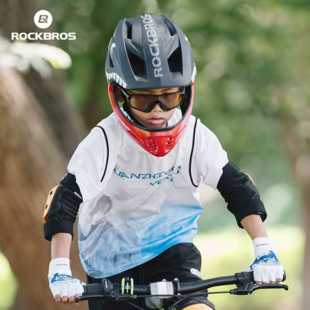 Ten innowacyjny kask rowerowy ROCKBROS to uniwersalne rozwiązanie 2w1 gwarantujące maksymalne bezpieczeństwo i komfort dla dzieci podczas jazdy na rowerze, hulajnodze, rolkach czy rowerku biegowym. Odpinana szczęka pozwala szybko przekształcić go z kasku typu full face (idealnego do jazdy downhill) w lekki kask enduro/MTB. Dzięki temu twoje dziecko jest zawsze odpowiednio chronione, niezależnie od trasy. Osłona podbródka została zaprojektowana w strukturze plastra miodu, co zapewnia dziecku możliwość swobodnego oddychania.