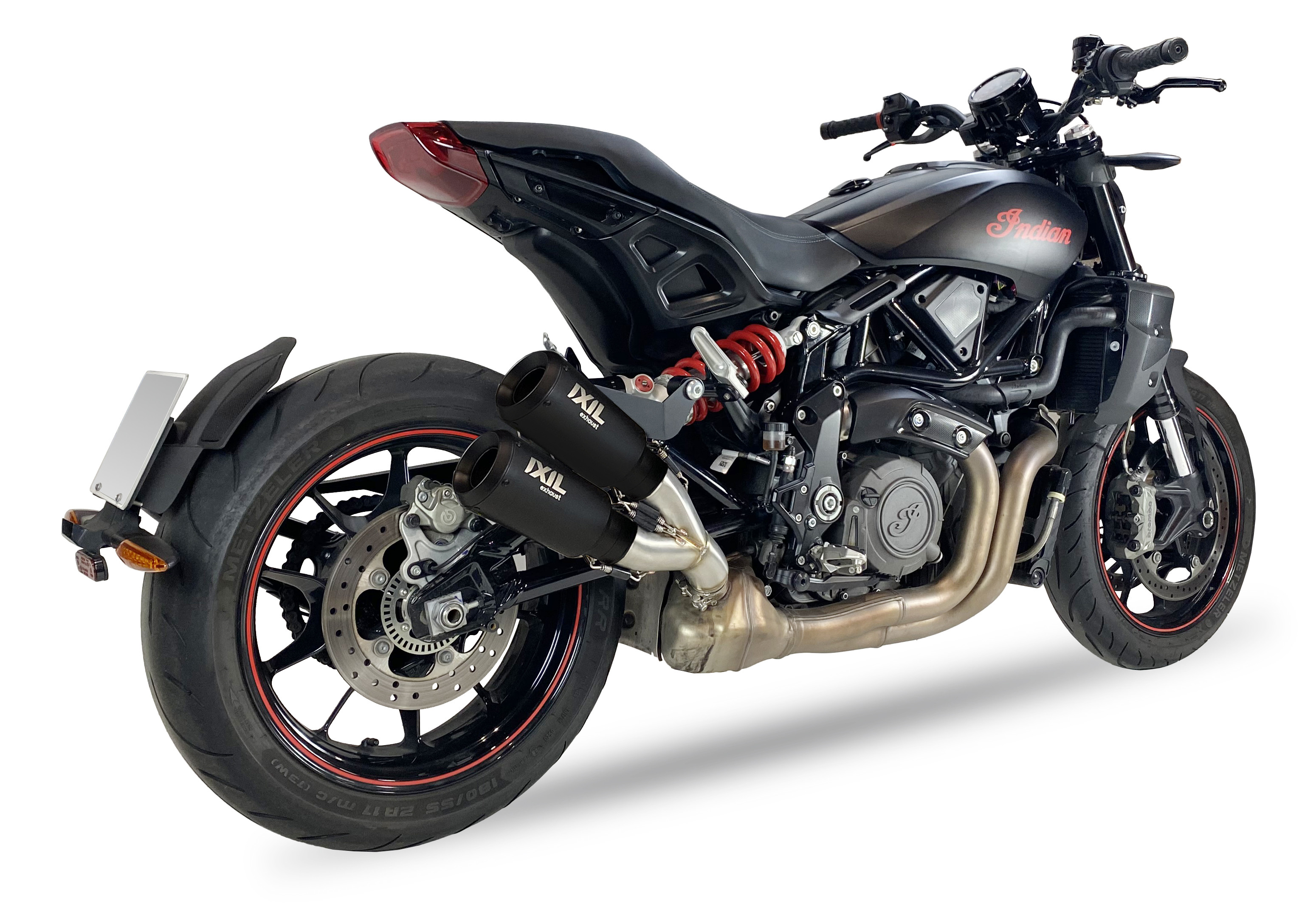 IXIL CI2222RB 2RB Slip-On Dual Race Xtrem Black to sportowy tłumik wydechowy typu Slip-On z podwójnym wyjściem dedykowany do Indian FTR 1200 S i FTR 1200 S Rally (2022-2023). Czarna, matowa powłoka oraz agresywne, głębsze brzmienie podkreślają sportowy charakter motocykla, oferując nowoczesny styl i dynamiczny dźwięk — idealny wybór dla fanów dynamicznej jazdy.