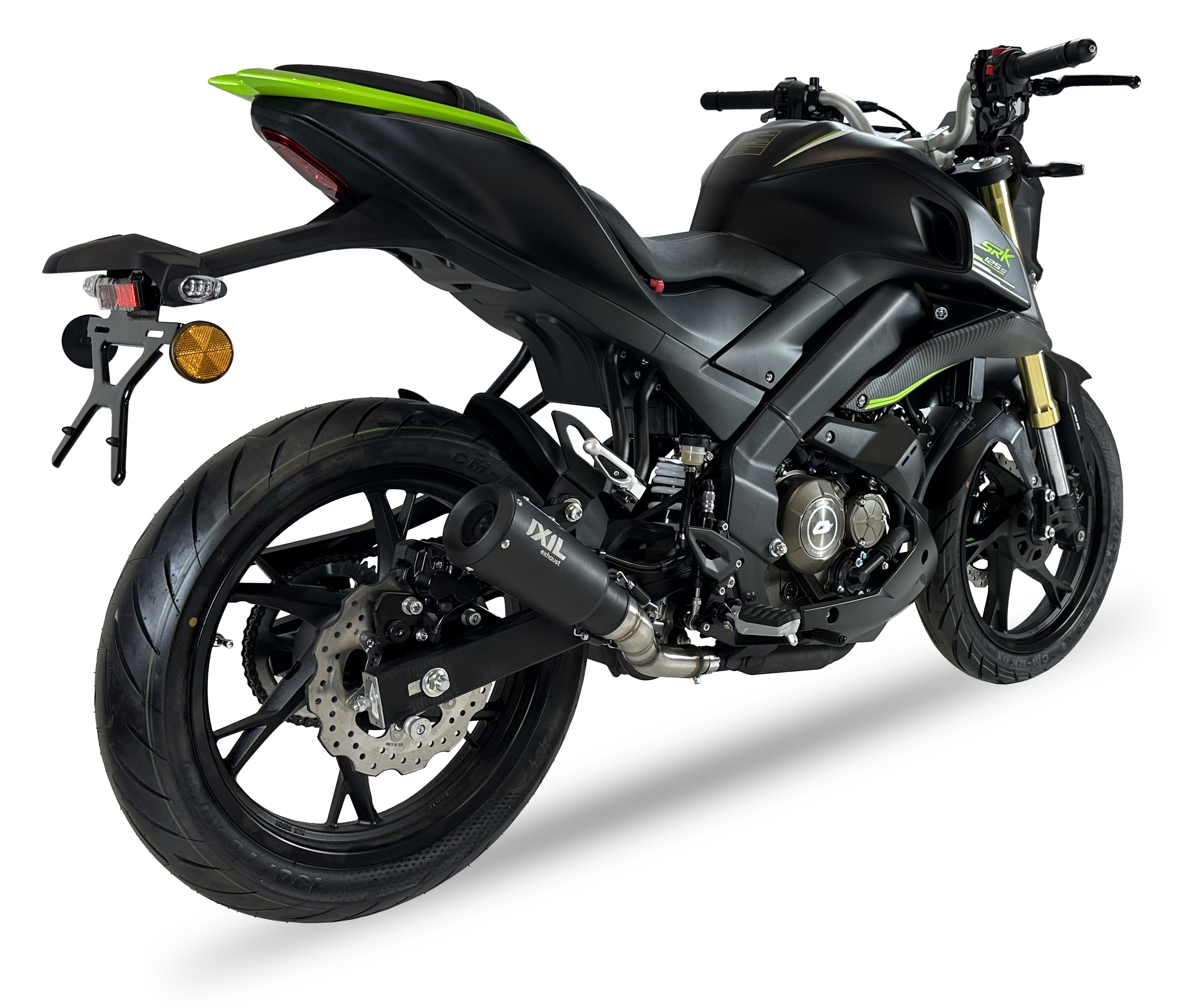 Sportowy tłumik IXIL RB Race Xtrem Black dedykowany do QJ MOTOR SRK 125 S / R to lekki układ wydechowy typu slip-on wykonany z trwałej stali nierdzewnej AISI304 z czarnym lakierowanym wykończeniem. Posiada stożkowy kształt, laserowo znakowane logo i stylowy charakter, który podkreśla wygląd motocykla. Produkt bez homologacji CE, idealny do jazdy sportowej lub stylowej customizacji.