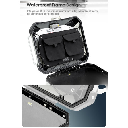 Kufer cechuje się doskonałą wodoodpornością, dzięki czemu Twoje rzeczy pozostaną suche niezależnie od warunków atmosferycznych. Ten model jest idealnym wyborem dla motocyklistów ceniących połączenie funkcjonalności, trwałości i eleganckiego wyglądu.