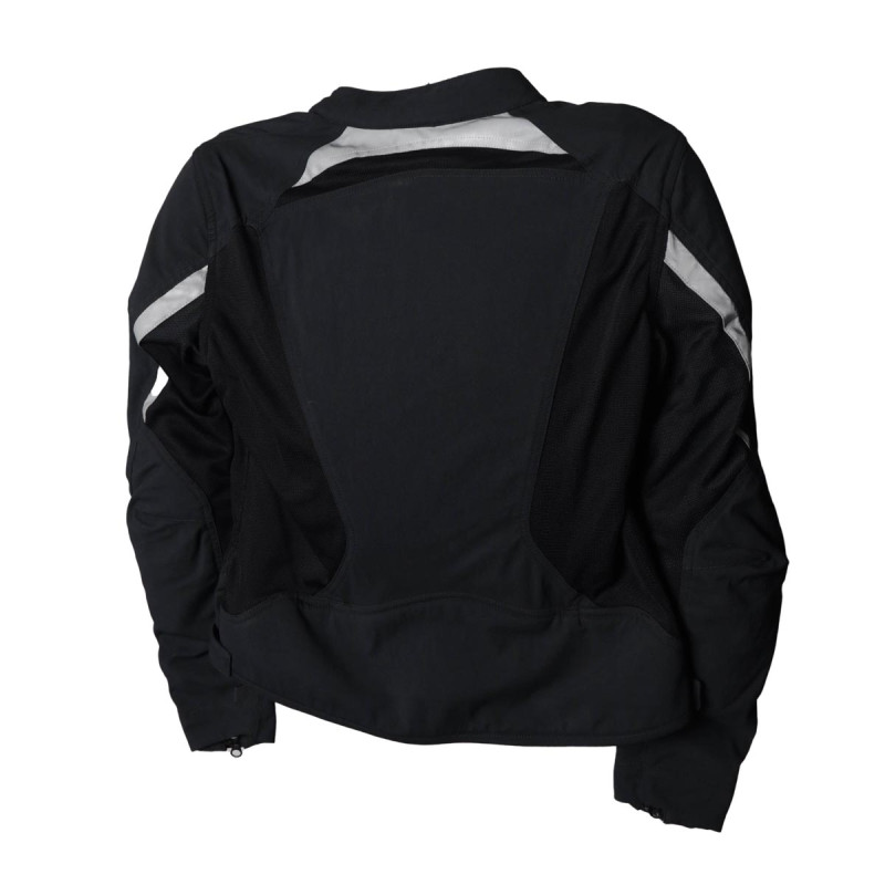 Integracja ze spodniami: obecność 40-centymetrowego zamka błyskawicznego umożliwia stabilne połączenie kurtki ze spodniami motocyklowymi, co zapobiega podwiewaniu i przesuwaniu się odzieży.
