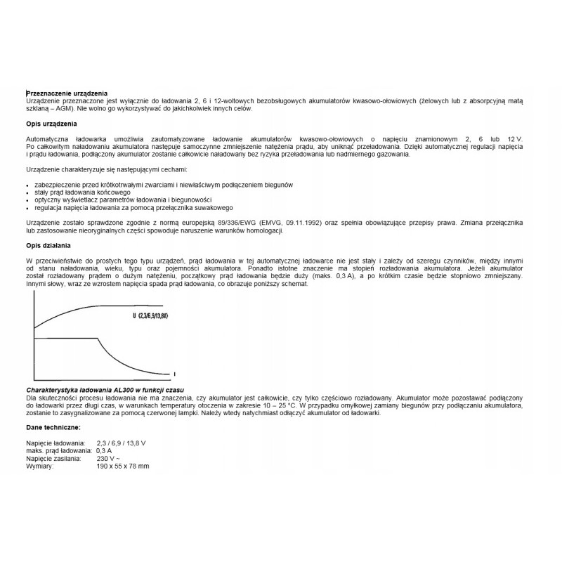 Ładuje wszystkie akumulatory ołowiowo-żelowe, kwasowo-ołowiowe oraz AGM.