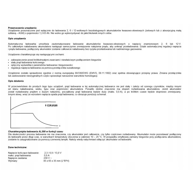 Dzięki automatycznej regulacji napięcia i prądu ładowania, podłączony akumulator zostanie całkowicie naładowany bez ryzyka przeładowania lub nadmiernego gazowania.