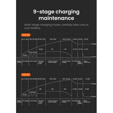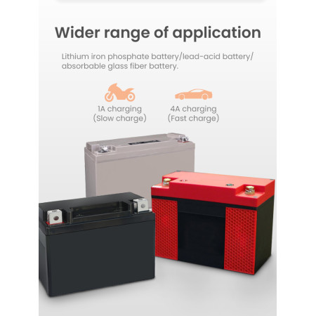 Działa z LiFePO4 (litowo-żelazowo-fosforanowymi), kwasowo-ołowiowymi i AGM – idealna do moto, skutera, quada czy auta w garażu.