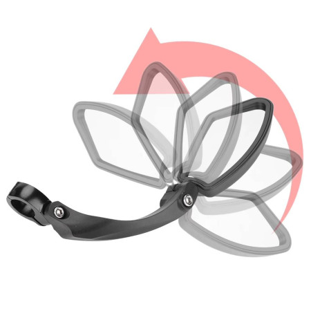 Pełna regulacja 3D: dzięki zastosowaniu przegubowej głowicy kulkowej, istnieje możliwość płynnej regulacji ustawienia w zakresie 180 oraz 360 stopni. Pozwala to na idealne dopasowanie kąta widzenia do Twojej sylwetki i pozycji na rowerze.