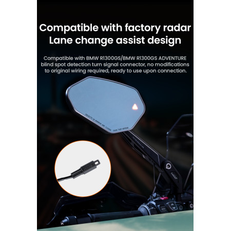 - Płynna integracja: Lusterka są kompatybilne z fabrycznym systemem zmiany pasa ruchu wspomaganym radarem oraz systemem LCW. Można je również podłączyć bezpośrednio do oryginalnego złącza kierunkowskazu z funkcją wykrywania martwego pola bez konieczności modyfikacji okablowania.
