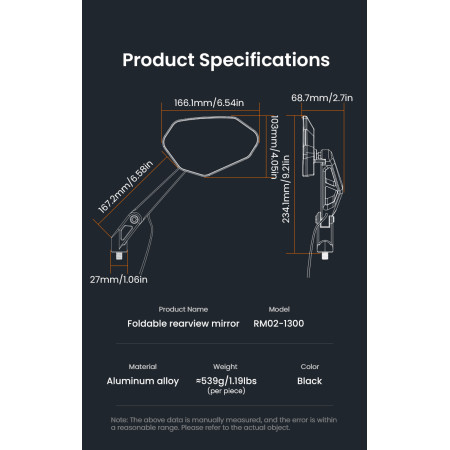 - Uniwersalna konstrukcja z zaworem kulowym: Kąt lusterka można dowolnie regulować, aby uzyskać idealne pole widzenia.
