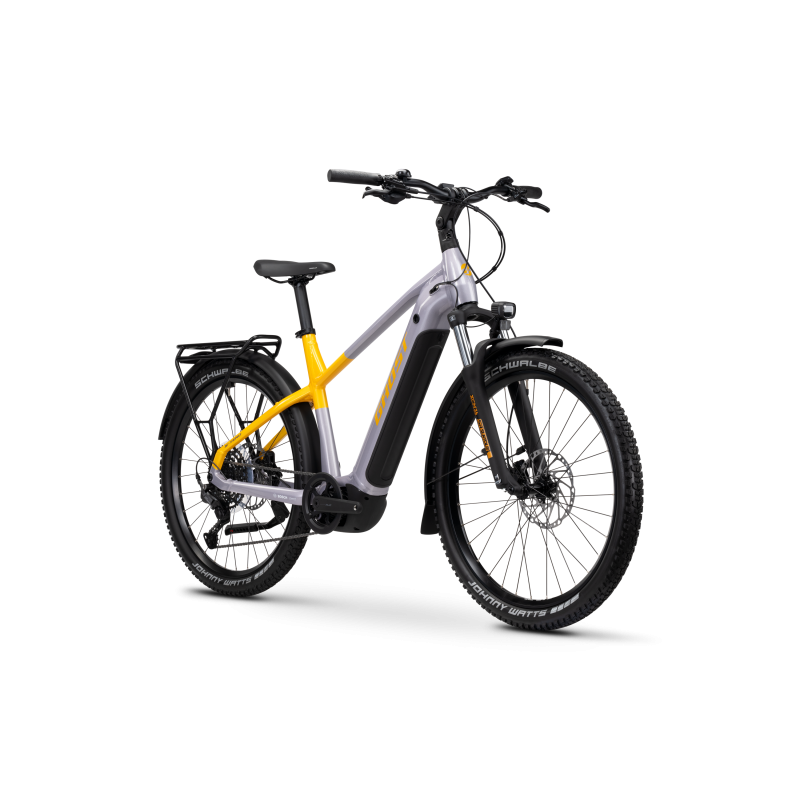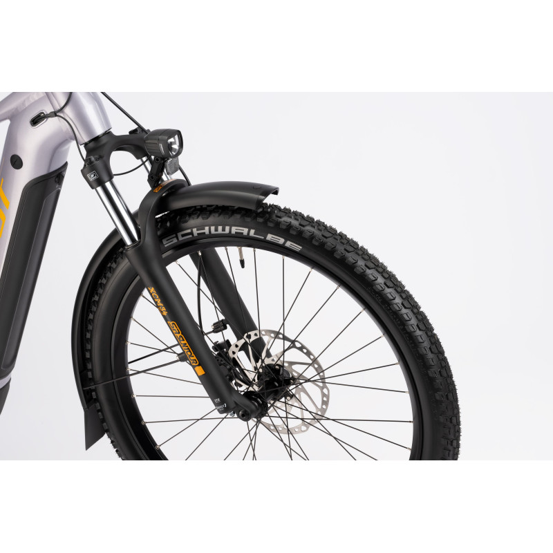 Wyrusz na szlak bez wysiłku. ALLTRAIL 3 to idealny eMTB na pierwsze kroki w jeździe po szlakach. Ten pełnozawieszeniowy rower turystyczny posiada konfigurację "mullet", zapewniając doskonałą trakcję na podjazdach i jednocześnie zachowując zwinność na zjazdach. Koncepcja jest prosta, ale genialna: przednie koło 29" zapewnia stabilność, podczas gdy tylne koło 27,5" pozwala z łatwością pokonywać ciasne zakręty. Dzięki 10-biegowej przekładni Shimano zawsze znajdziesz odpowiedni bieg, nawet na zróżnicowanym terenie. A mocny silnik Yamaha PW-S2 daje Ci dodatkowego kopa, gdy go potrzebujesz. Maksymalny komfort zapewnia widelec SR Suntour, oferujący 140 mm skoku, aby poradzić sobie nawet z najtrudniejszymi zjazdami. Jesteśmy przekonani, że ten eMTB zapewni maksymalną przyjemność z jazdy turystycznej w każdym terenie, z łatwością, jakiej nigdy wcześniej nie doświadczyłeś – nawet gdy robi się wyboisto.
