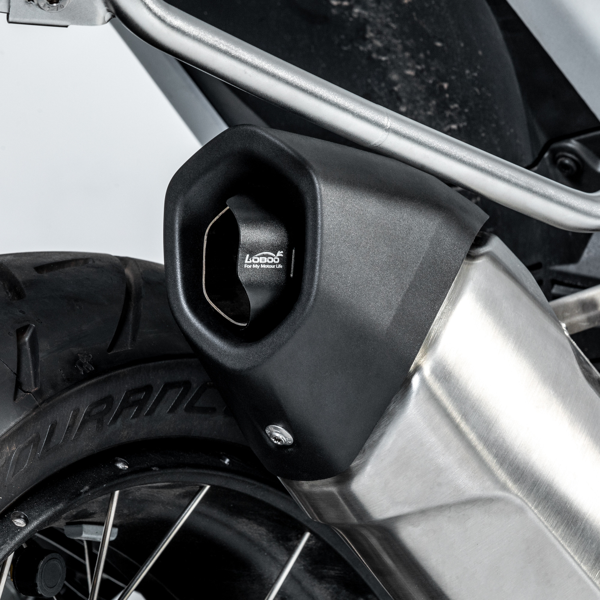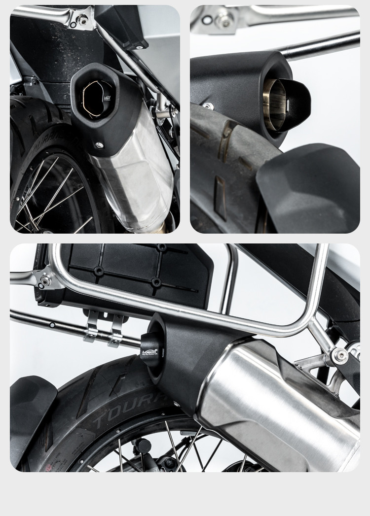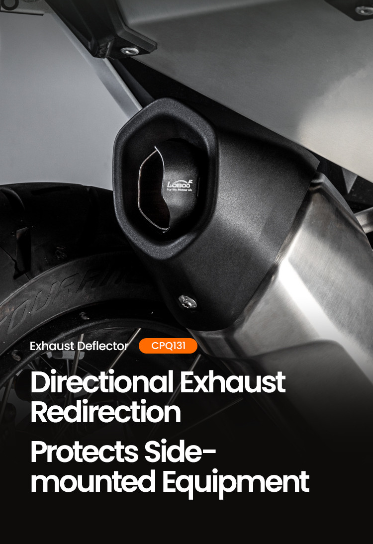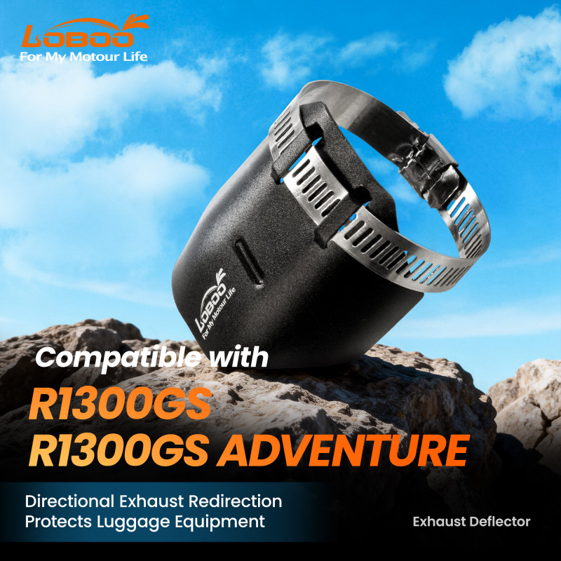 Nowe BMW R1300GS i R1300GS Adventure to motocykle stworzone do podróży bez ograniczeń, ale nawet w tak dopracowanej maszynie są detale, które warto ulepszyć. Jednym z nich jest kierunek wyrzutu gorących spalin, które mogą trafiać prosto w bagaż. LOBOO CPQ131 powstał właśnie po to, żeby rozwiązać ten problem — odchyla strumień spalin w dół i do tyłu, z dala od sakw oraz kufrów. Producent pozycjonuje ten model jako luggage heat shield przeznaczony do BMW R1300GS (od 2023) oraz R1300GS Adventure (od 2024).