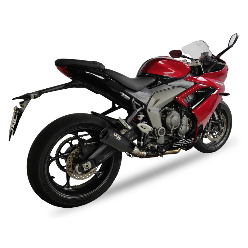 Sportowy IXIL RB Full System Race Xtrem Black to kompletny układ wydechowy dedykowany do Triumph Daytona 660 2024-2026 (LG20 / LG21). Wykonany z odpornej stali nierdzewnej AISI304 z czarnym lakierowanym wykończeniem, cechuje się stożkową konstrukcją, laserowo grawerowanym logo oraz dynamicznym designem. Produkt bez homologacji CE – idealny do jazdy sportowej i tuningowej.