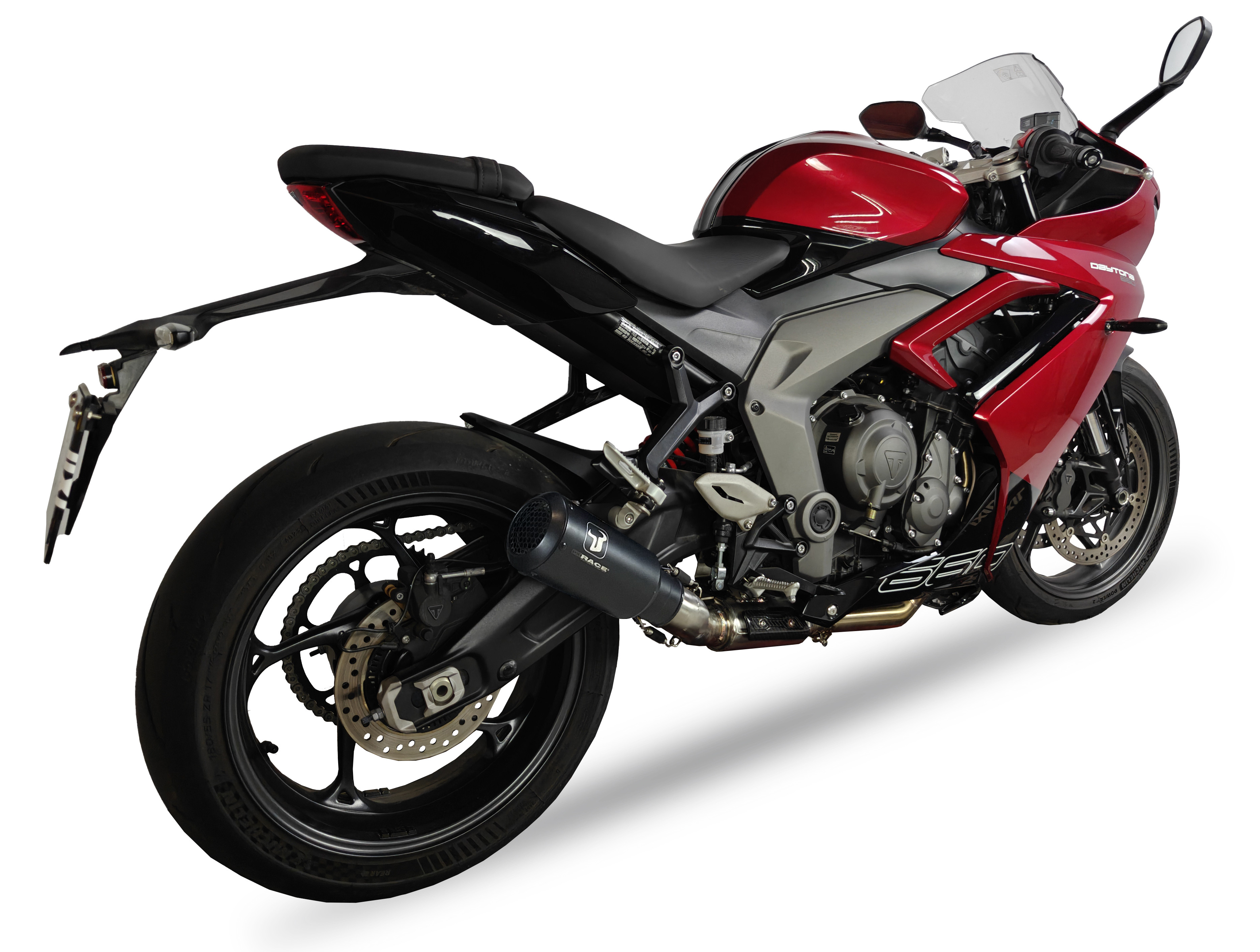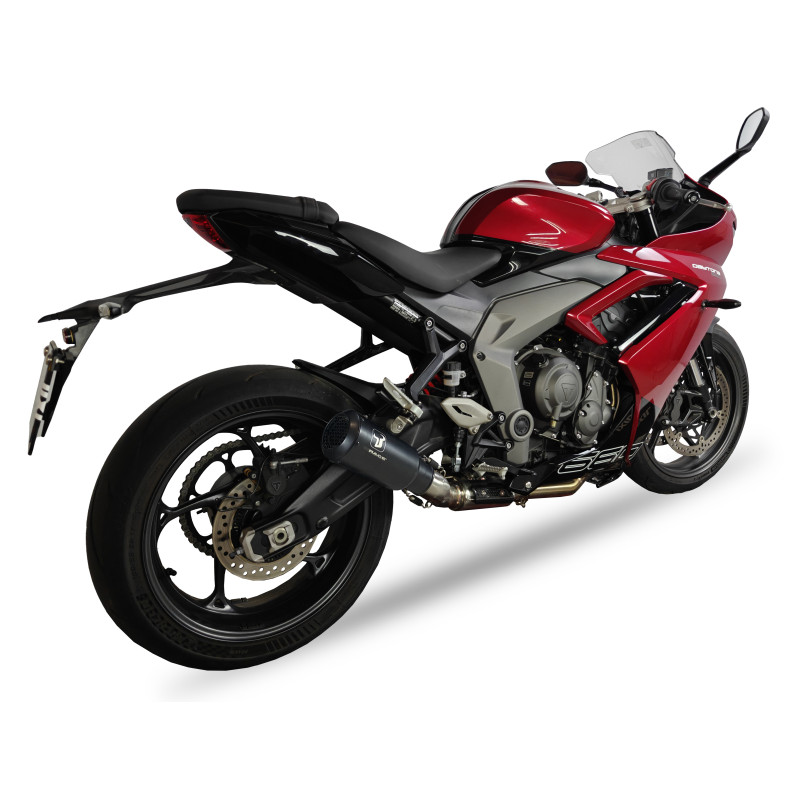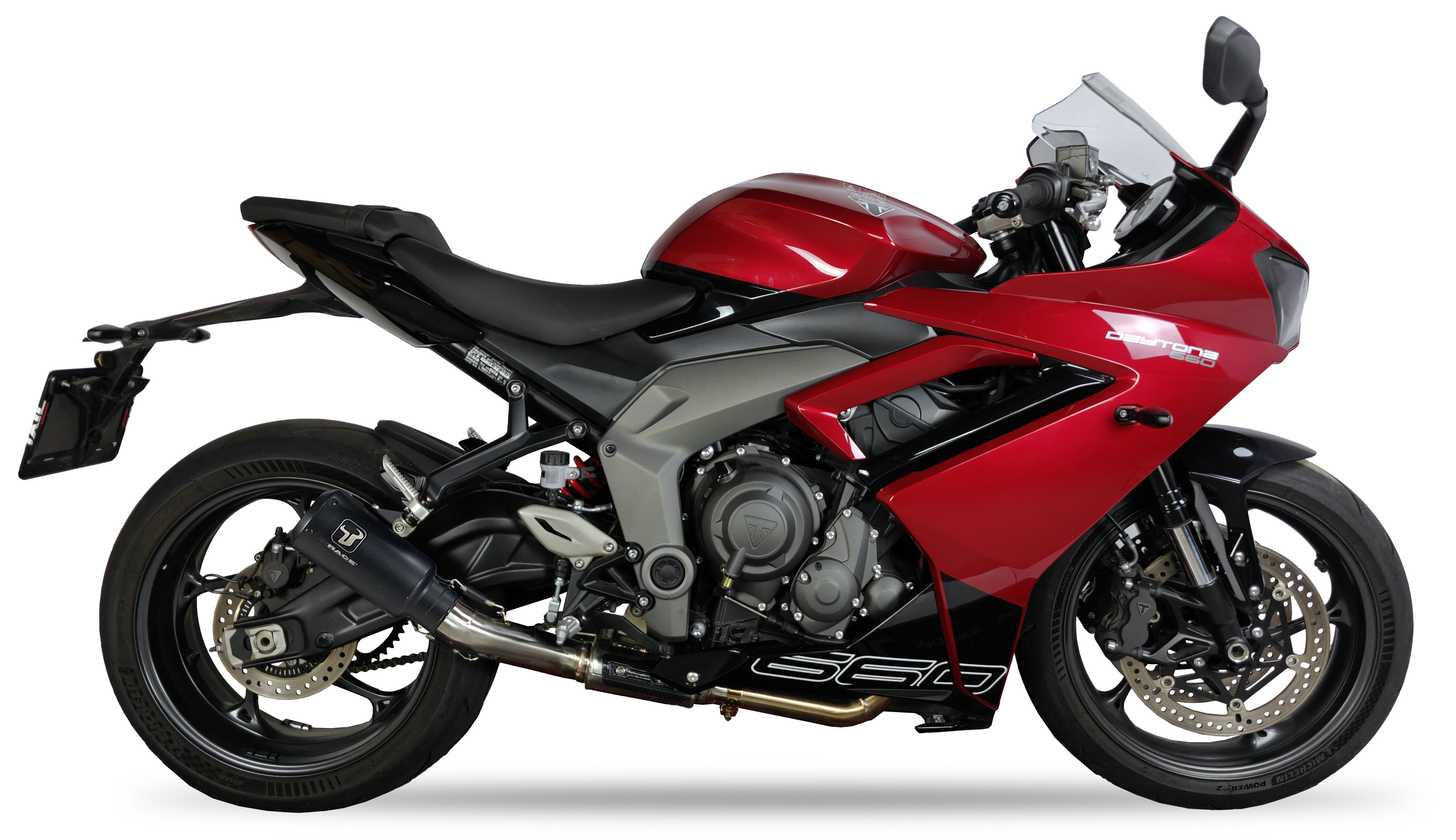 Układ wydechowy MK2B Series Black Full System wyróżnia się agresywnym, nowoczesnym wykończeniem, które idealnie komponuje się z linią Triumph Daytona 660. Czarna powłoka i dopracowane detale wpływają na wyrazisty, sportowy wygląd motocykla, a jednocześnie konstrukcja systemu zapewnia głębsze, bardziej dynamiczne brzmienie.