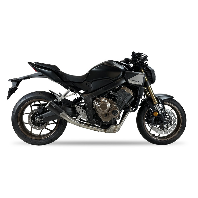 Ten pełny system wydechowy zastępuje cały seryjny układ wydechowy (łącznie z kolektorami), co może skutkować bardziej otwartym dźwiękiem, redukcją masy i większym charakterem akustycznym niż przy standardowym wydechu. Carbonowe elementy oraz koniczny kształt dodają motocykli nowoczesnego, agresywnego wyglądu, podkreślając sportowy charakter modelu CB 650 R.