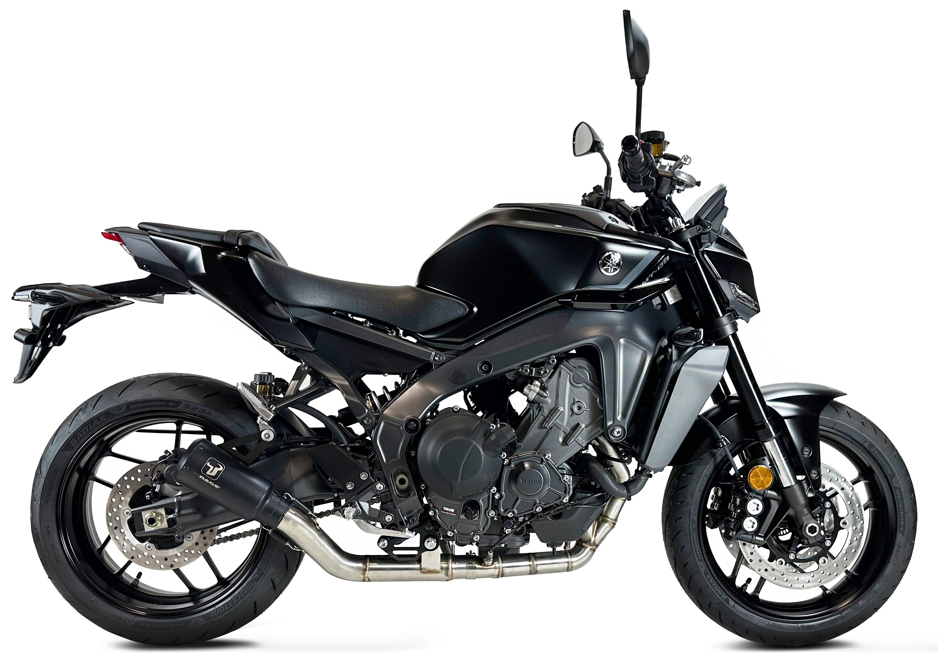 Race Full System MK2B Black oferuje głębsze, bardziej zdecydowane brzmienie niż seryjny układ wydechowy, co intensyfikuje doznania podczas jazdy. Czarne, matowe wykończenie nadaje motocyklowi nowoczesny i agresywny wygląd, który świetnie współgra z charakterystycznym stylem Yamaha MT-09.