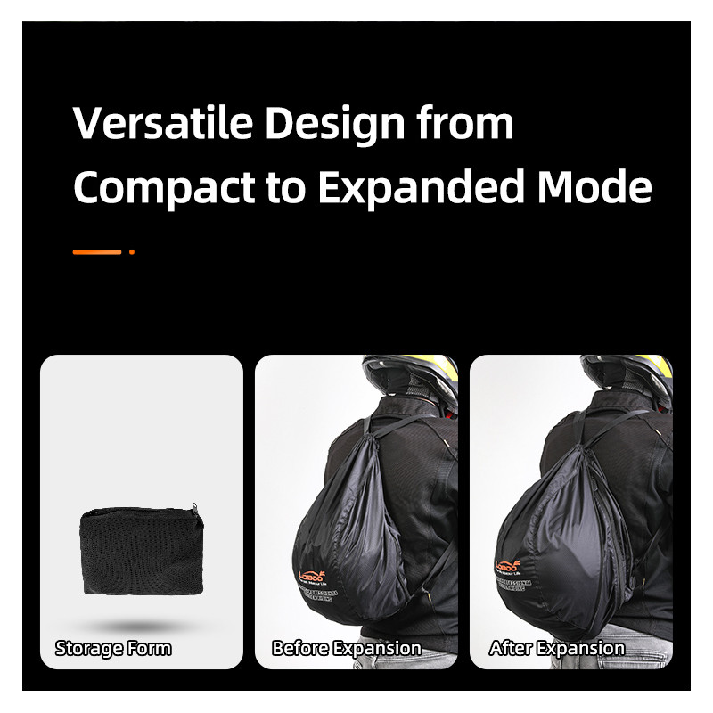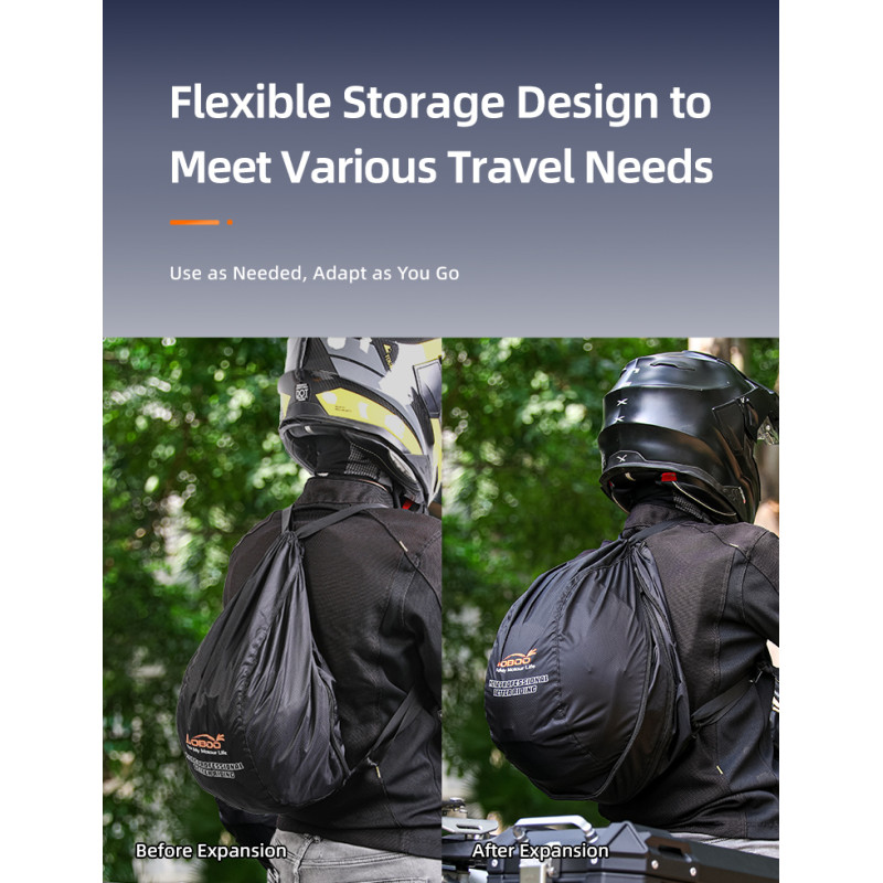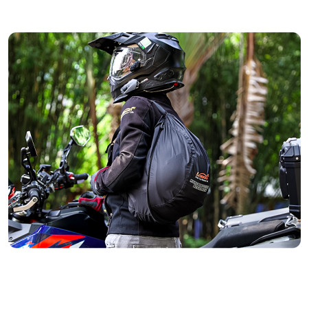 Znasz ten moment, gdy zsiadasz z moto i… zaczyna się żonglerka kaskiem? W ręce niewygodnie, do kufra nie zawsze wejdzie, a pod pachą wygląda jak walka z piłką lekarską. LOBOO BHB01BK rozwiązuje temat po motocyklowemu: to mini-paczka, którą wrzucasz do kieszeni lub tankbaga, a gdy trzeba – w kilka sekund zamienia się w pełnowymiarowy plecak, który mieści kask integralny i zostawia Ci wolne ręce.
