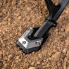 Powiększona stopka skutecznie ogranicza ryzyko, że motocykl „wkopie się” w miękką ziemię, błoto czy gorący asfalt – szczególnie, gdy moto jest obładowane kuframi albo stoi na nierównym podłożu.