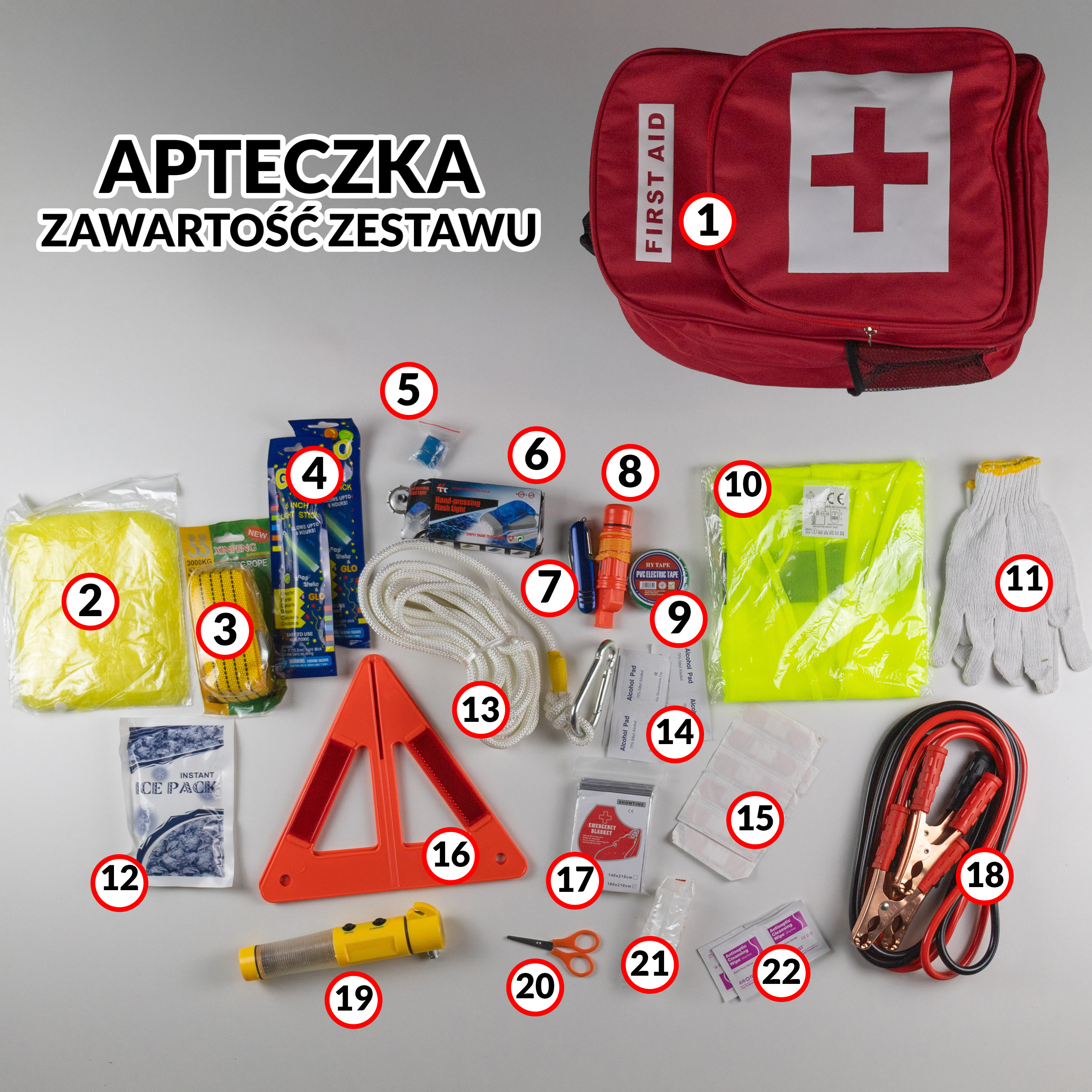 Samochodowy zestaw awaryjny "Apteczka Plus" to kompleksowe i niezawodne wyposażenie, które powinno znaleźć się w każdym pojeździe. Zaprojektowany z myślą o nagłych wypadkach, stłuczkach, awariach technicznych oraz konieczności udzielenia pierwszej pomocy, zestaw ten gwarantuje, że będziesz przygotowany na każdą nieprzewidzianą sytuację na drodze.