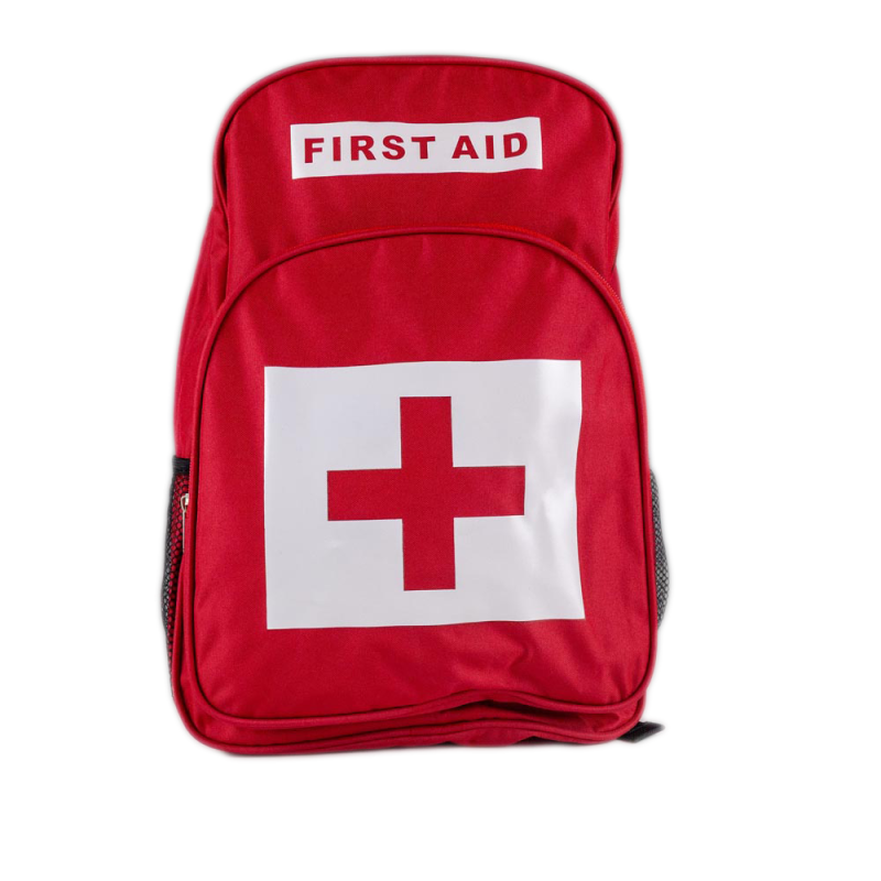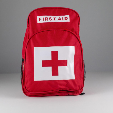 1. Plecak: Trwały plecak z oznaczeniem FIRST AID.