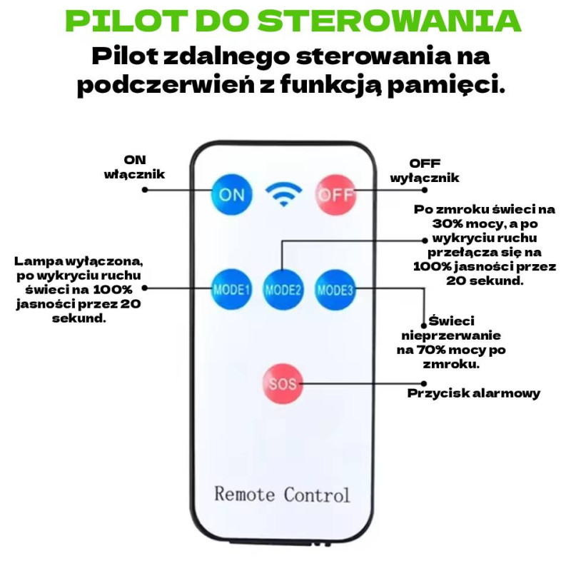 Trzy tryby działania - pełna kontrola: lampa posiada trzy tryby działania, które można dostosować za pomocą pilota zdalnego sterowania: