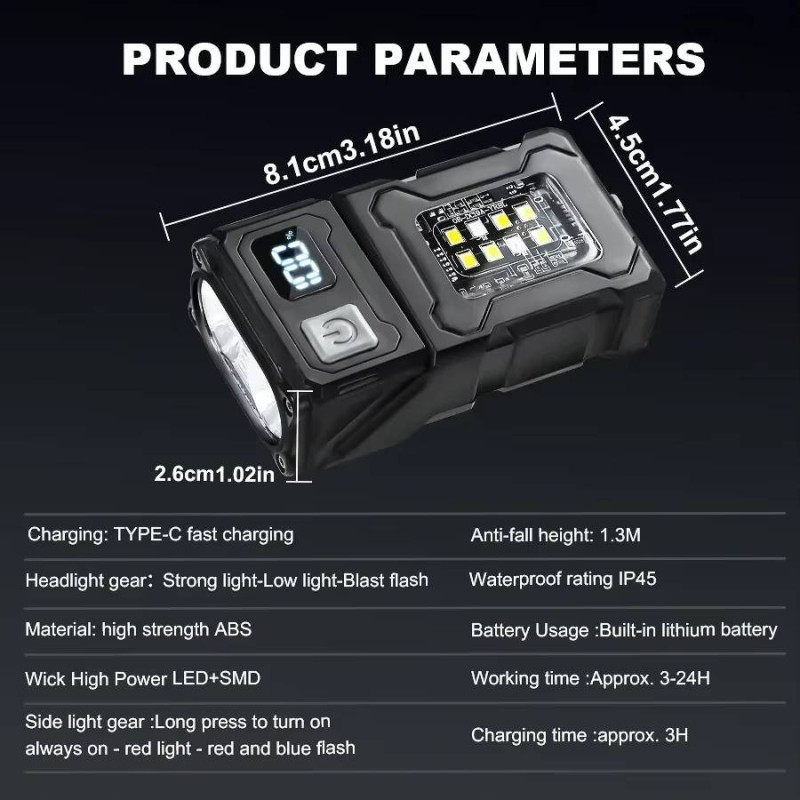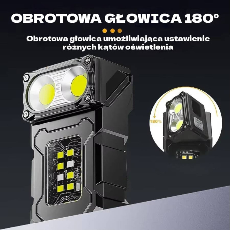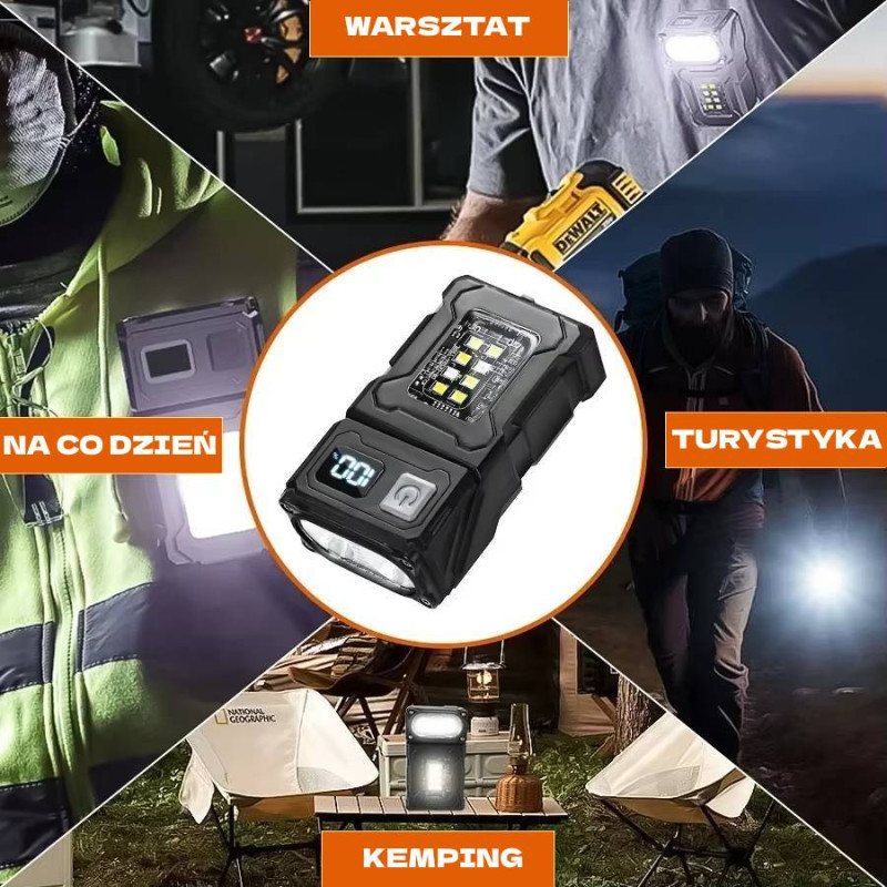 Ta mini latarka COB jest wytrzymała, łatwa w transporcie i oferuje szereg zaawansowanych funkcji, które docenisz podczas pracy i wypraw.