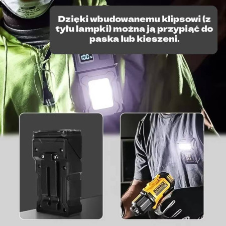 Poznaj kompaktową i wszechstronną latarkę taktyczną, która jest niezbędnikiem podczas każdej aktywności na zewnątrz oraz w garażu. Łącząc funkcję latarki, lampy roboczej i powerbanku w jednej wytrzymałej obudowie, gwarantuje niezawodne oświetlenie i wygodę użytkowania.