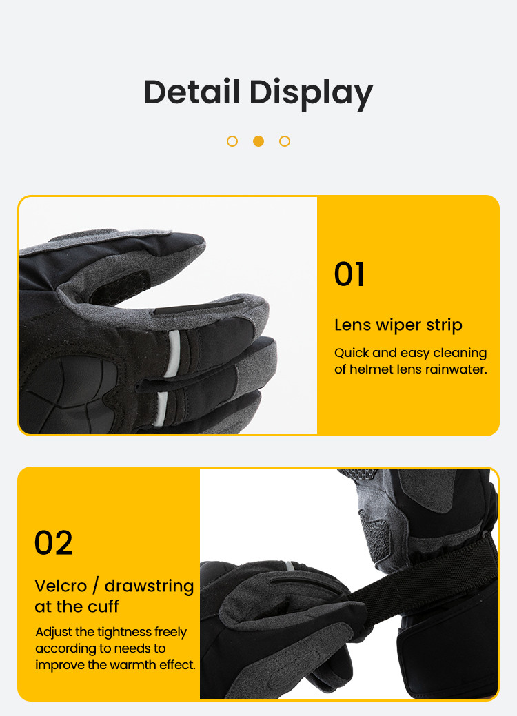 Dzięki regulowanym ustawieniom ogrzewania, wielu opcjom zasilania i zaawansowanej izolacji rękawiczki te zapewnią ciepło i ochronę dłoniom niezależnie od warunków pogodowych. Niezależnie od tego, czy korzystasz z zasilania motocykla, przenośnego powerbanku, czy specjalnej baterii do rękawiczek LOBOO, możesz cieszyć się długimi przejażdżkami bez martwienia się o żywotność baterii.