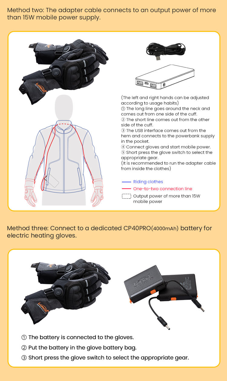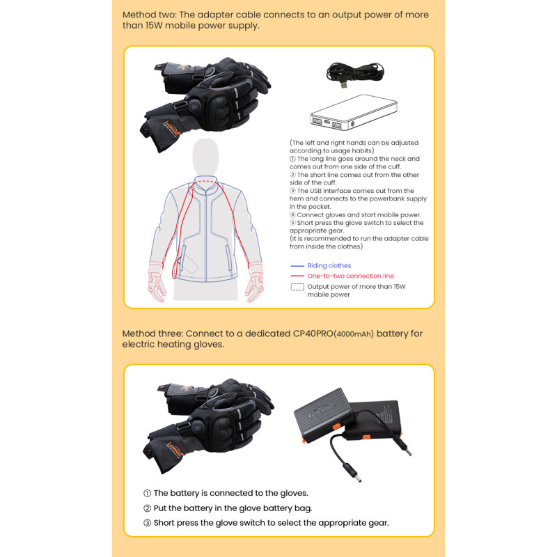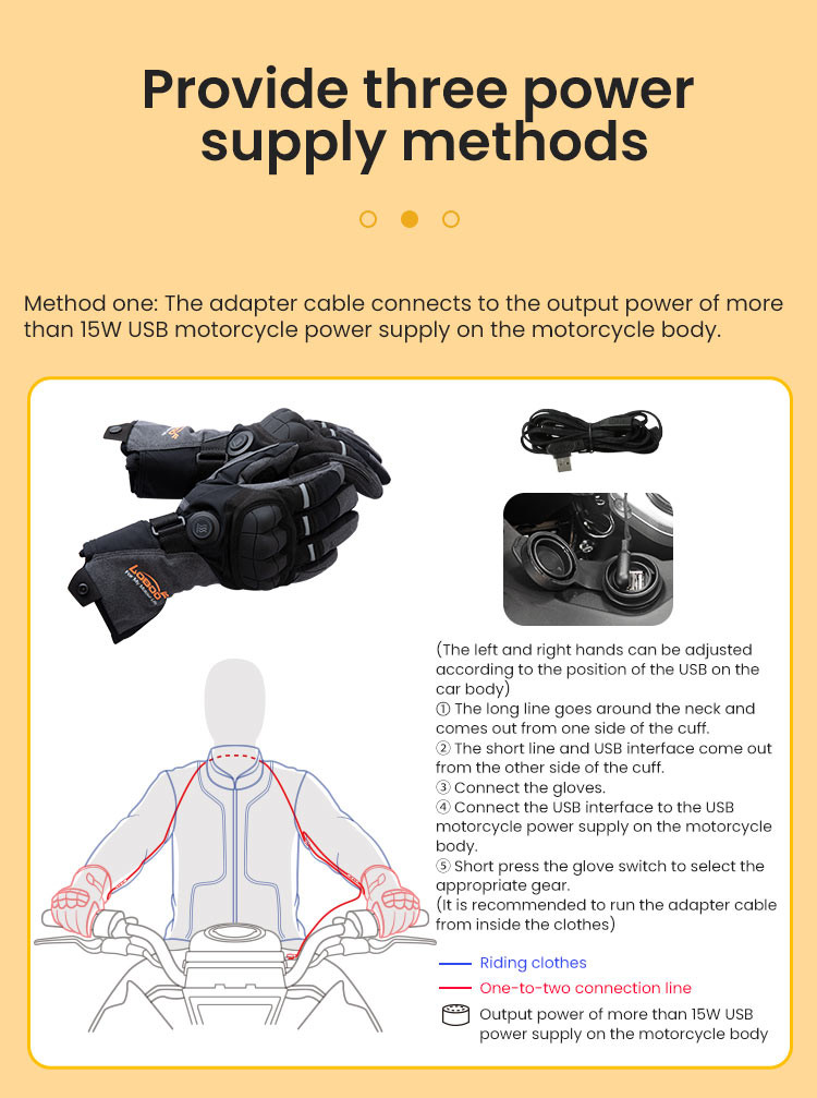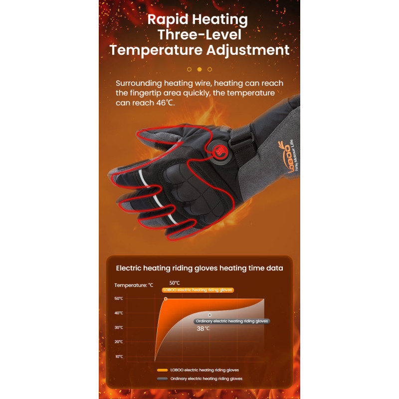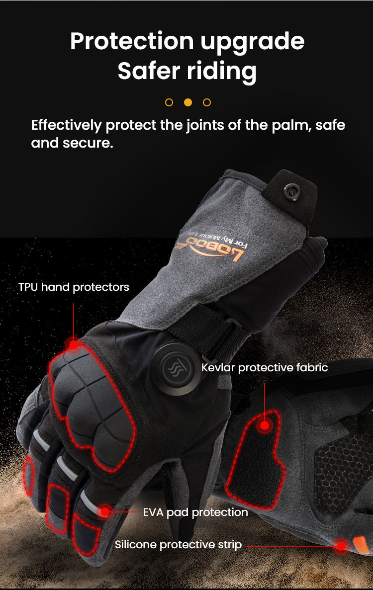 Dzięki regulowanym ustawieniom ogrzewania, wielu opcjom zasilania i zaawansowanej izolacji rękawiczki te zapewnią ciepło i ochronę dłoniom niezależnie od warunków pogodowych. Niezależnie od tego, czy korzystasz z zasilania motocykla, przenośnego powerbanku, czy specjalnej baterii do rękawiczek LOBOO, możesz cieszyć się długimi przejażdżkami bez martwienia się o żywotność baterii.